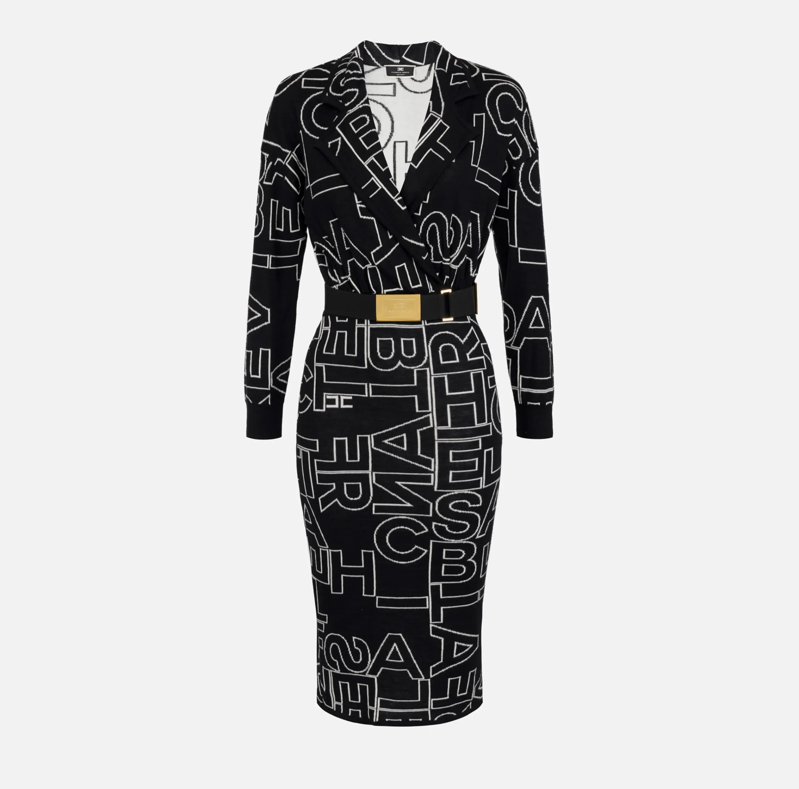 Abiti Midi|Abiti In Maglia|Elisabetta Franchi Abito midi in misto lana lettering Nero/Burro