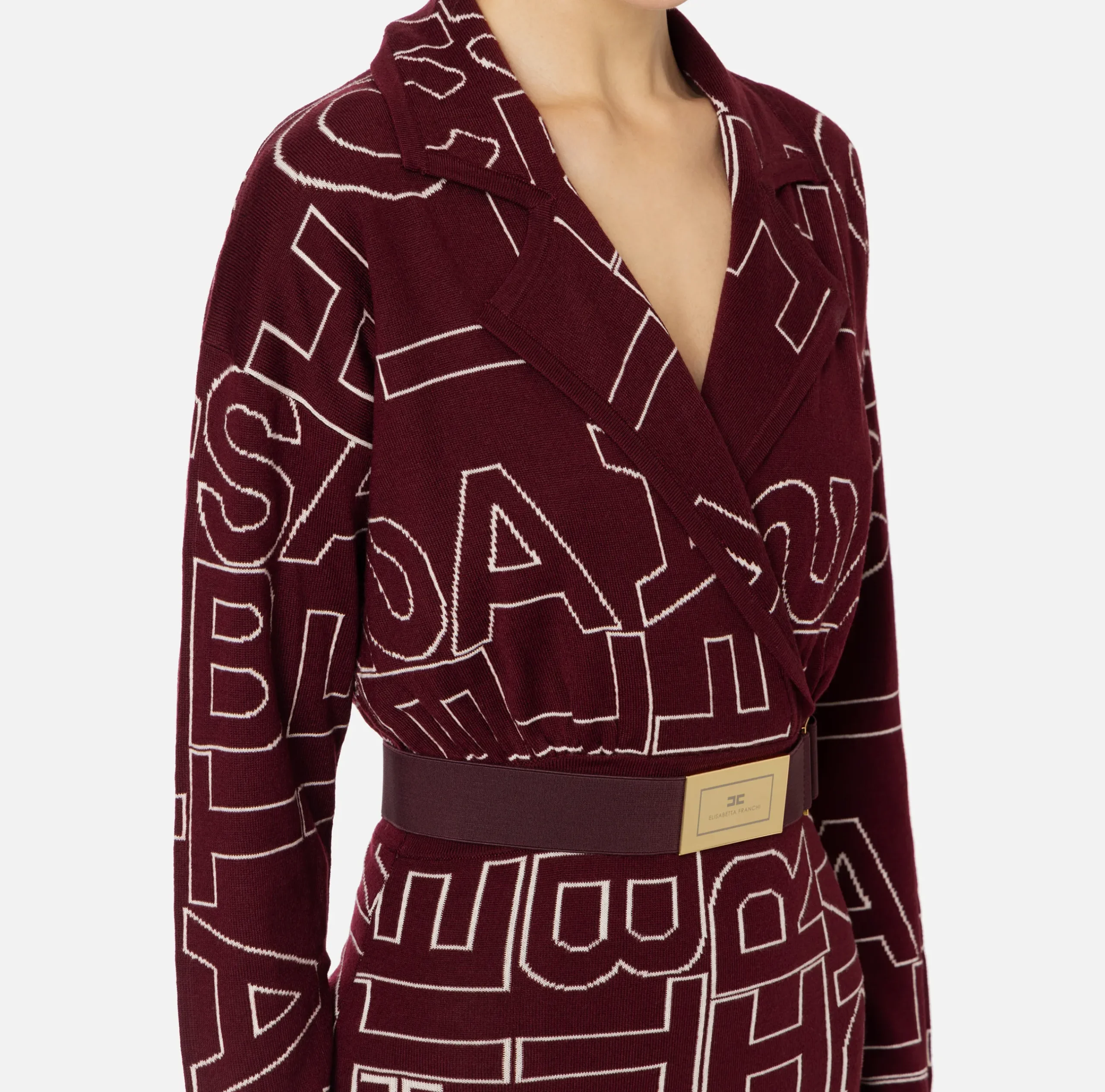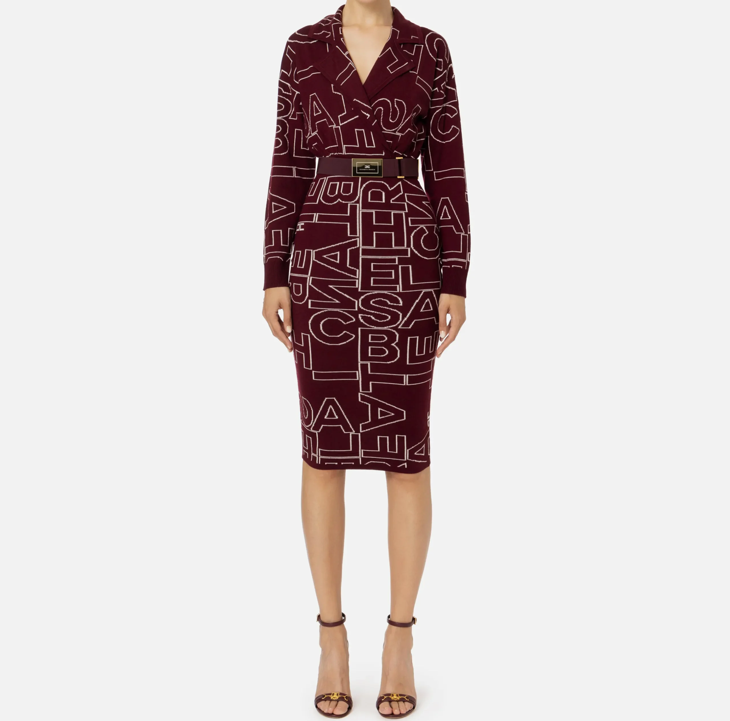 Abiti Midi|Abiti In Maglia|Elisabetta Franchi Abito midi in misto lana lettering RougeNoir/Burro