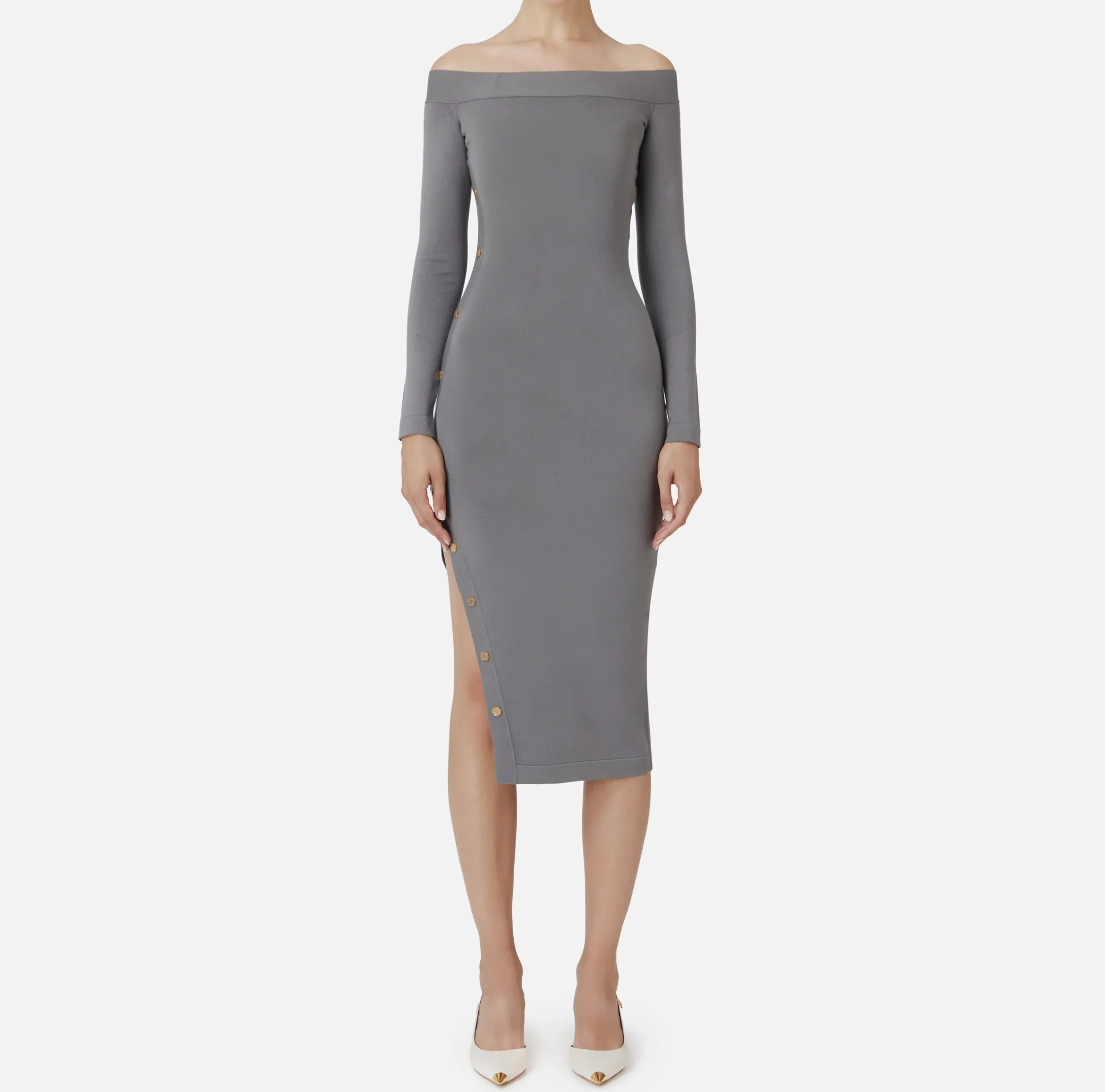 Abiti Midi|Abiti In Maglia|Elisabetta Franchi Abito midi in viscosa con bottoni sullo spacco Steel