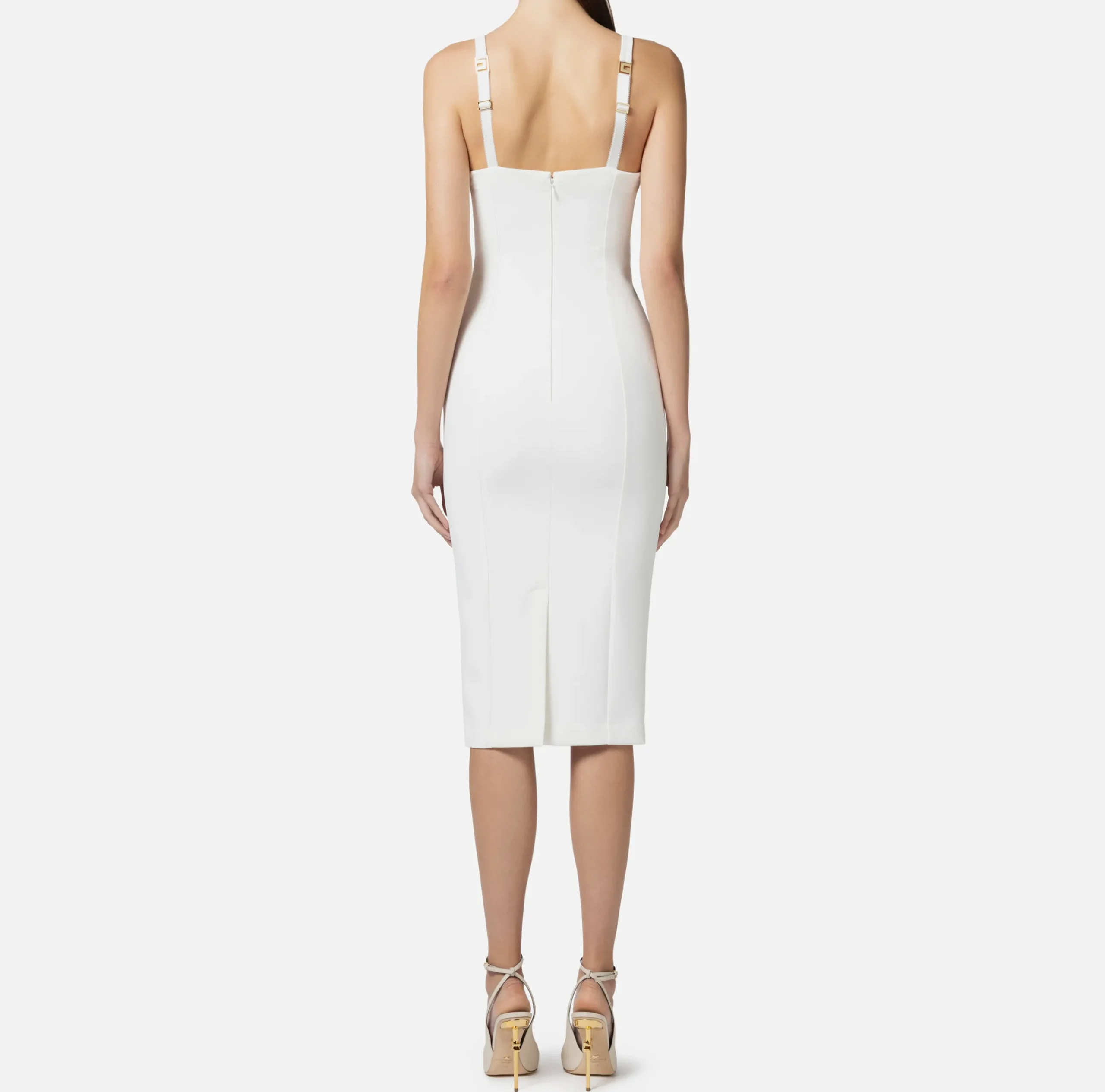 Abiti Midi|Abiti Tubino|Elisabetta Franchi Abito midi in crêpe stretch taglio coppe Avorio