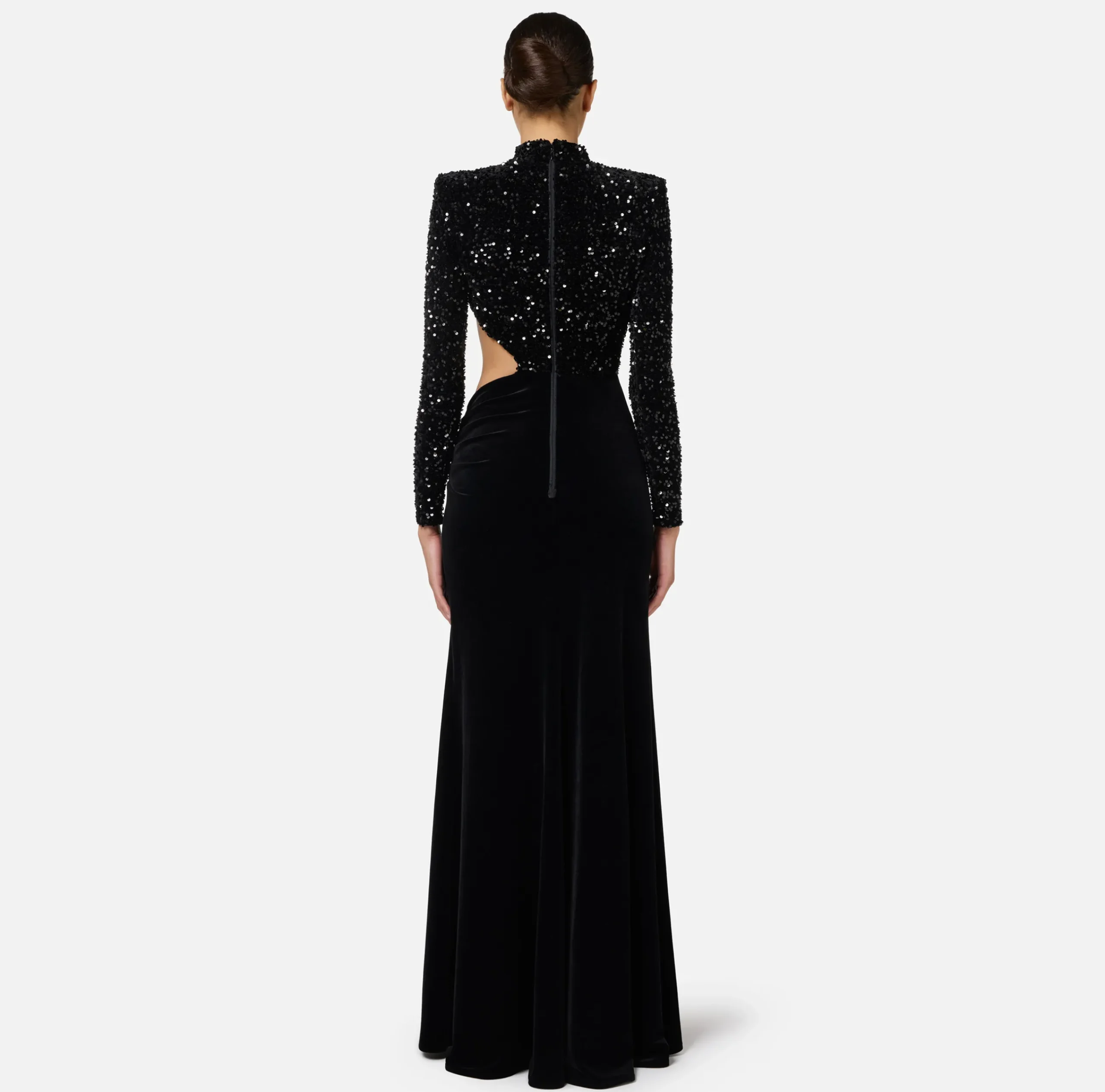 Abiti Red Carpet|Red Carpet|Elisabetta Franchi Abito red carpet in ciniglia ricamata con pailettes con cut-out Nero