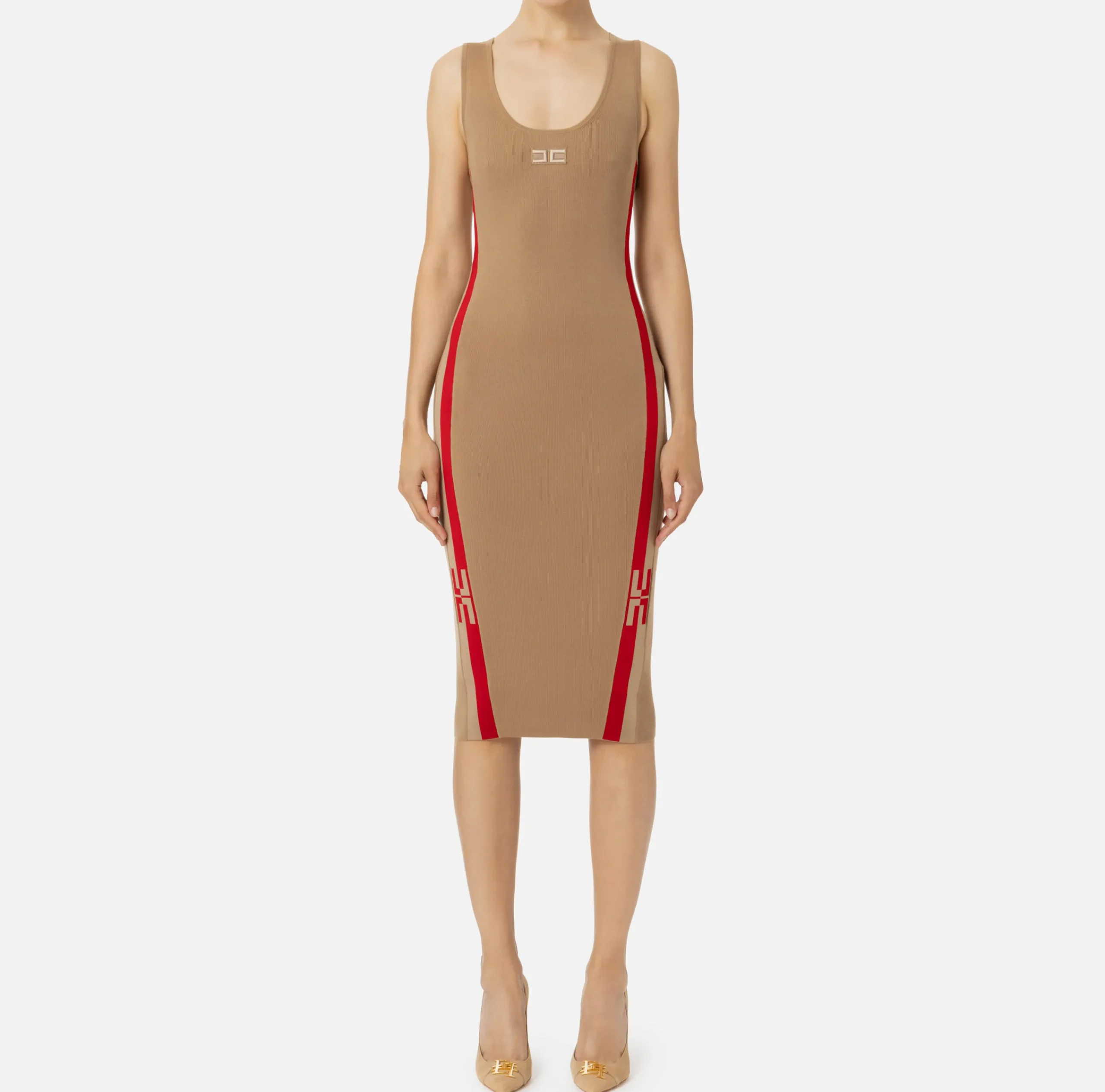 Abiti Tubino|Abiti Midi|Elisabetta Franchi Abito midi in viscosa con bande logo Camel/RedPassion