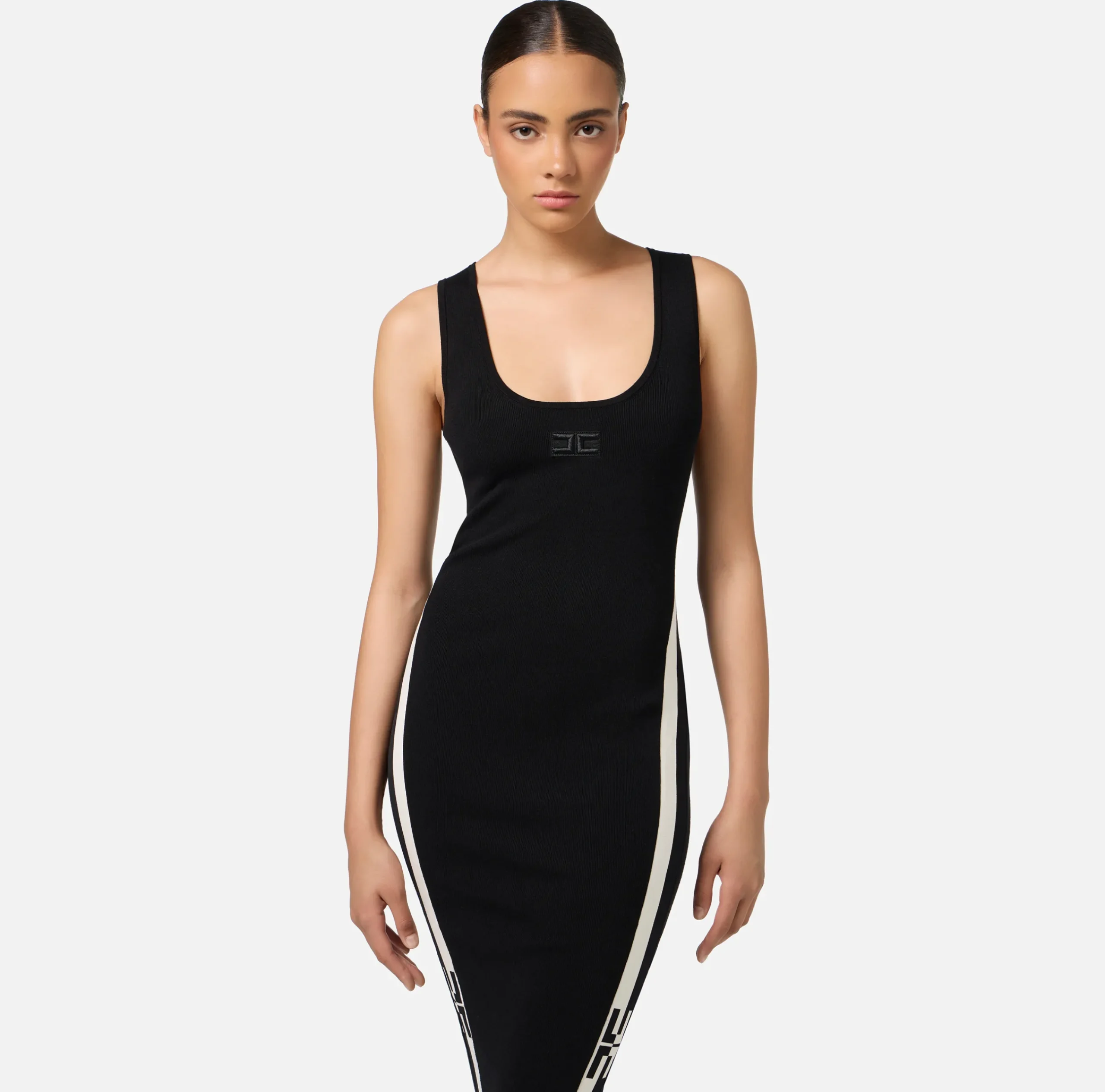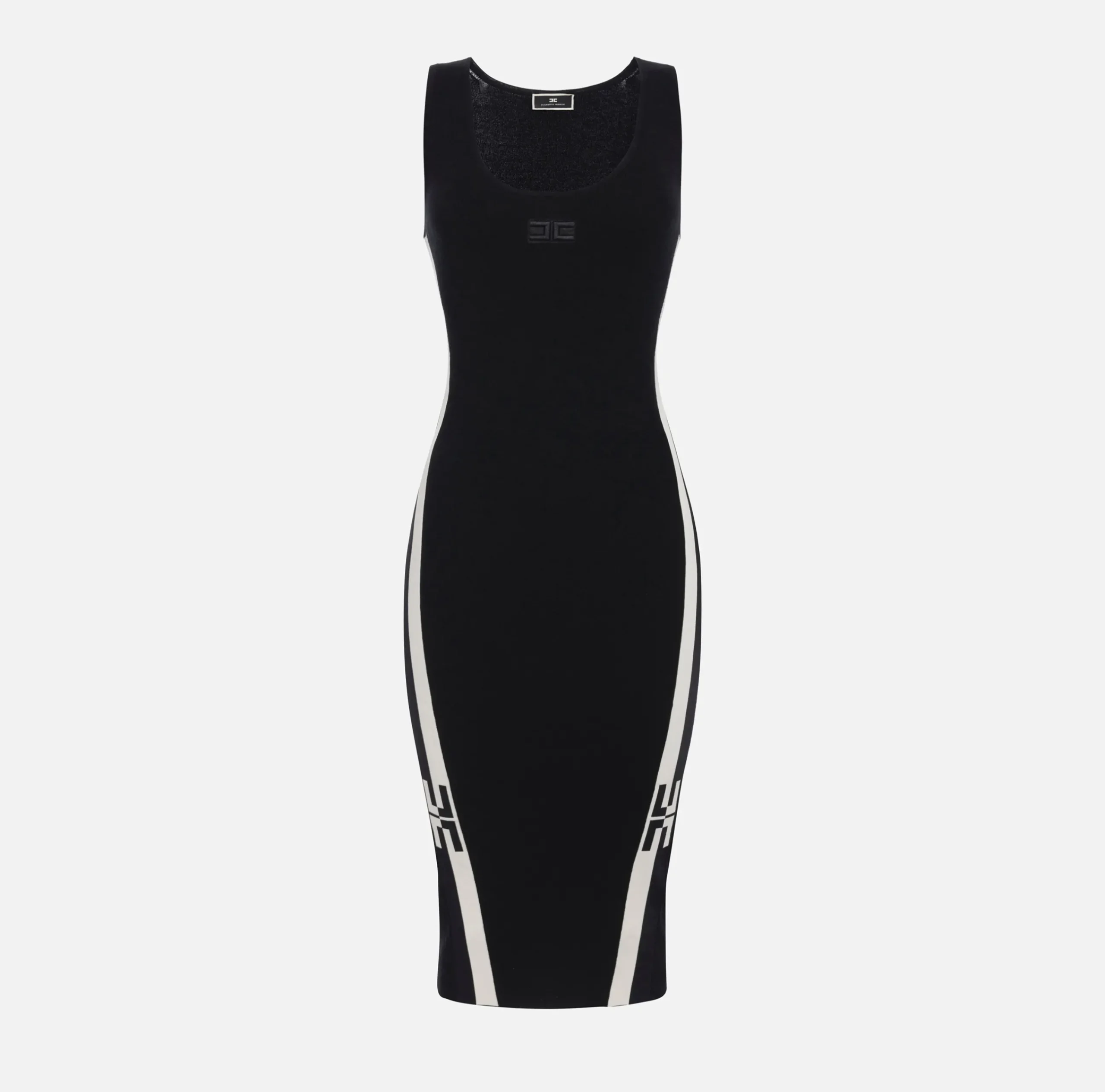 Abiti Tubino|Abiti Midi|Elisabetta Franchi Abito midi in viscosa con bande logo Nero/Burro