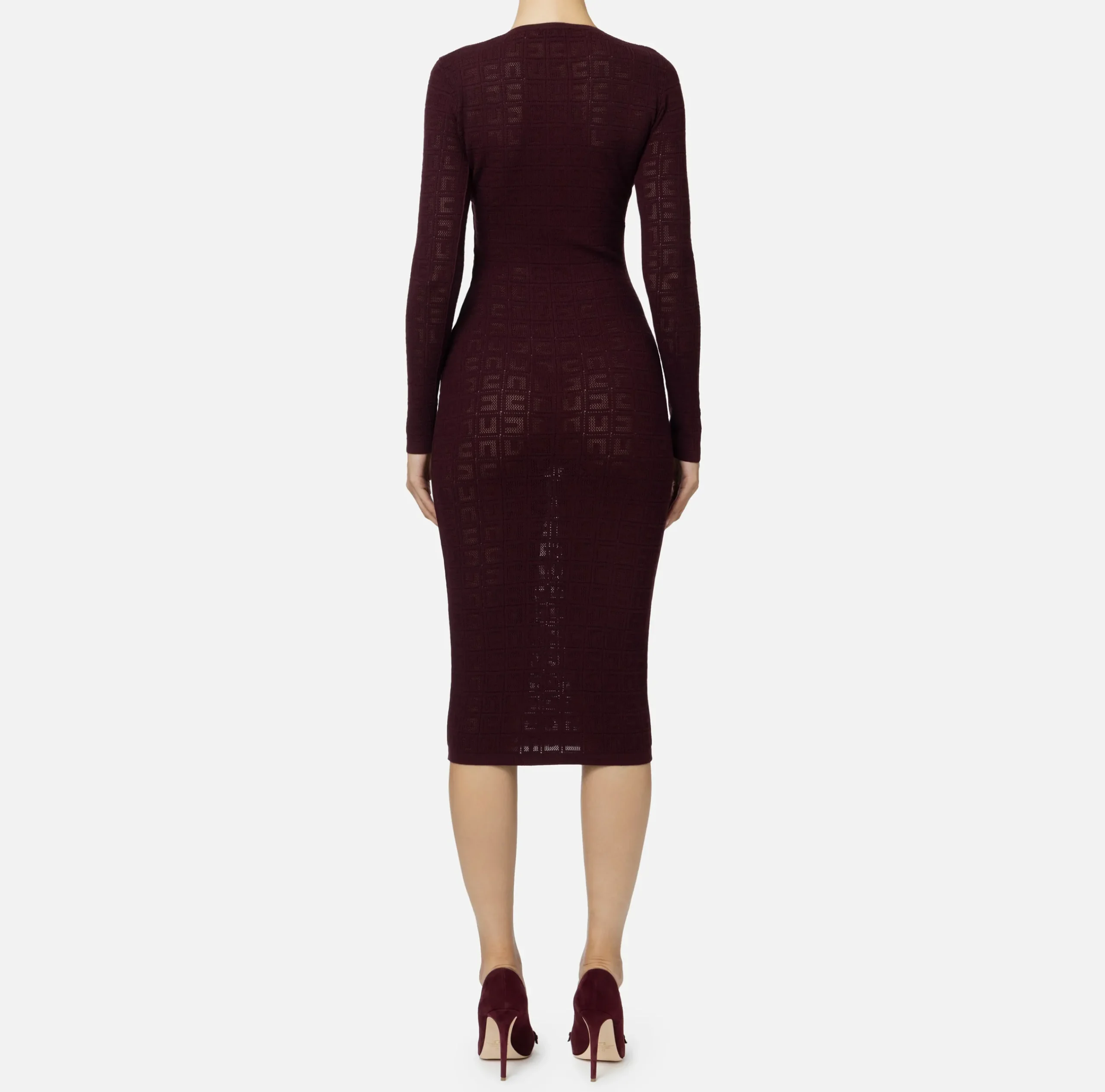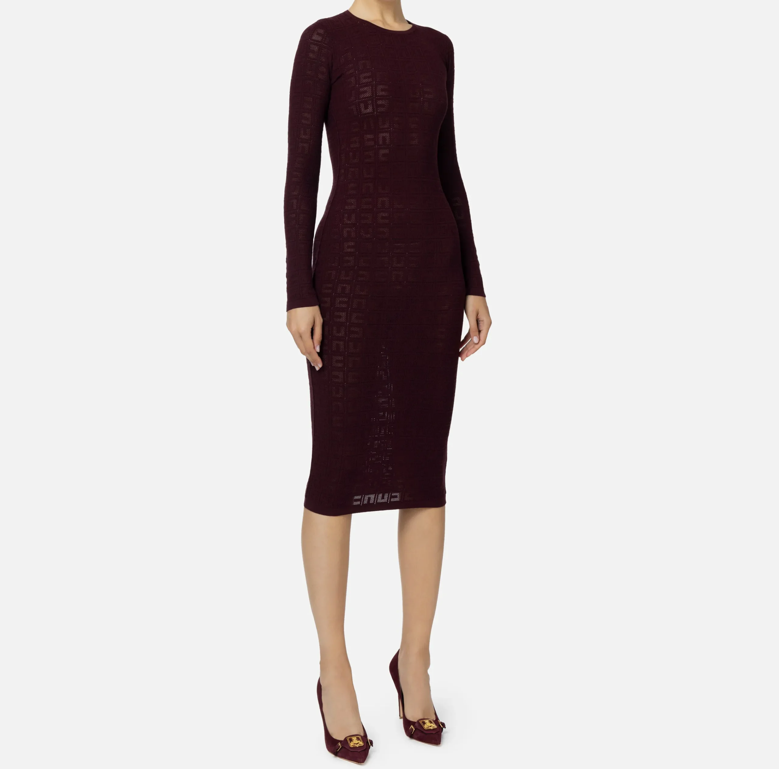 Abito midi in viscosa punto rete con logo all over. È caratterizzato da maniche lunghe e scollo a giro.