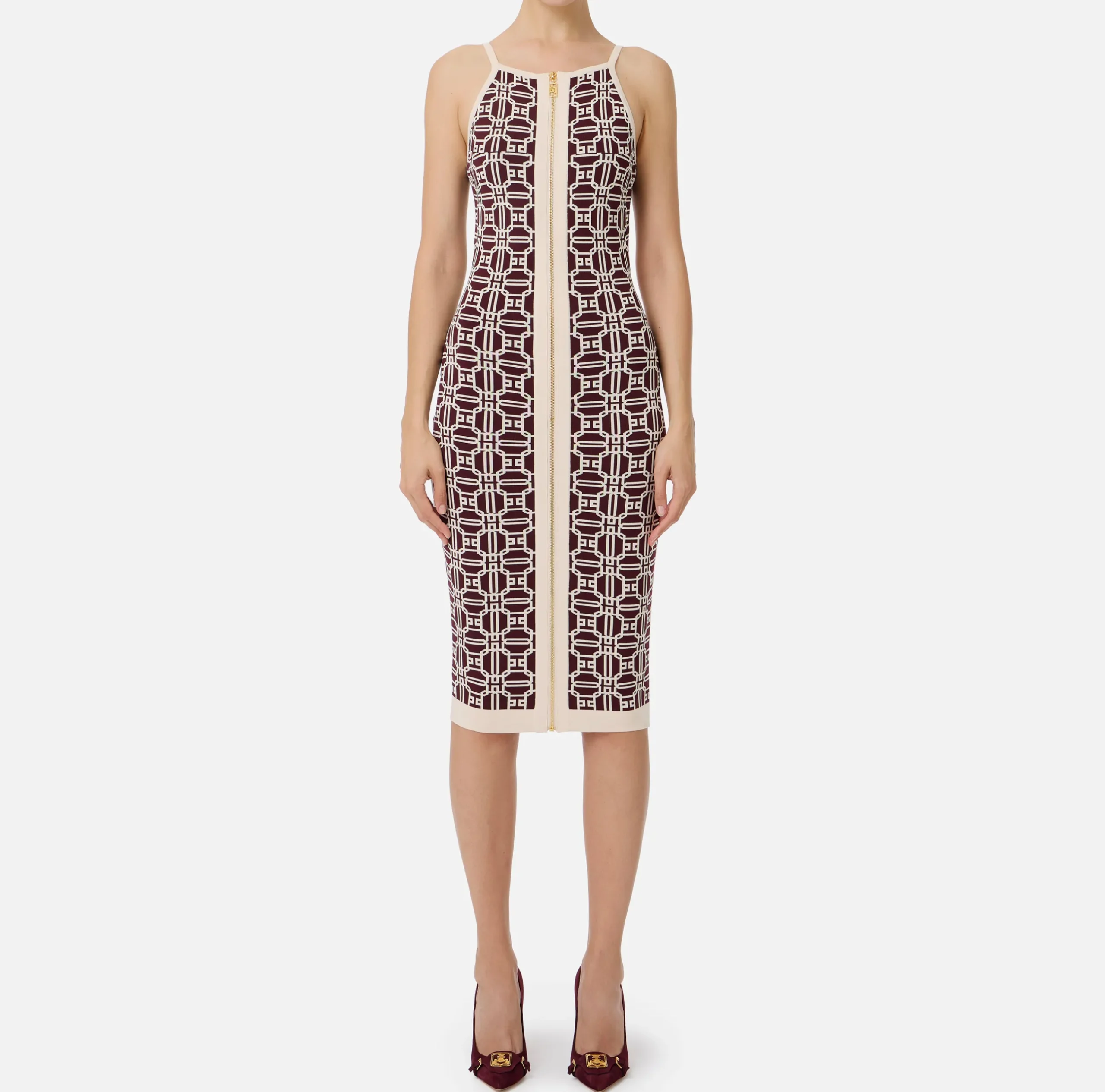 Abiti|Abiti Midi|Elisabetta Franchi Abito midi logo jacquard RougeNoir/Burro
