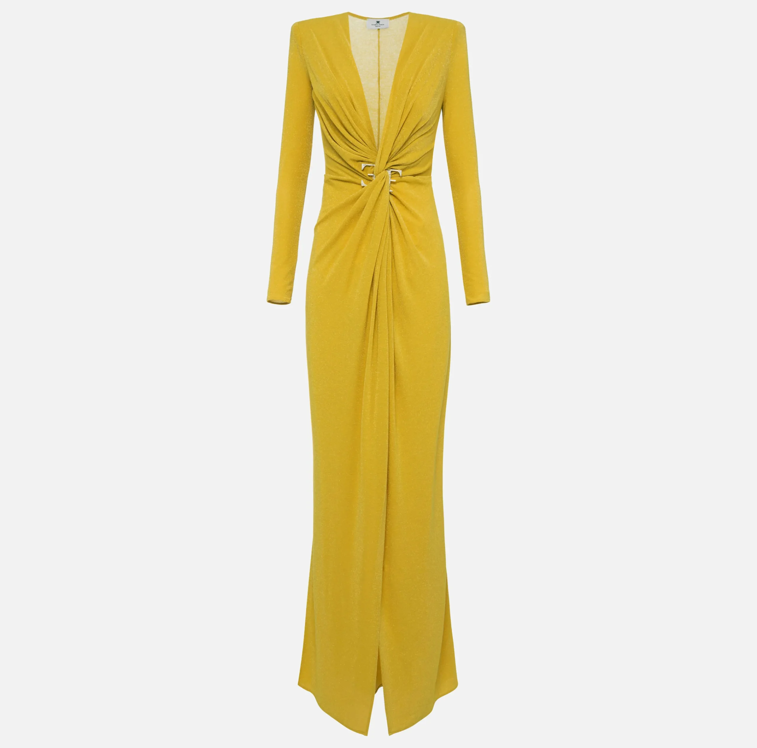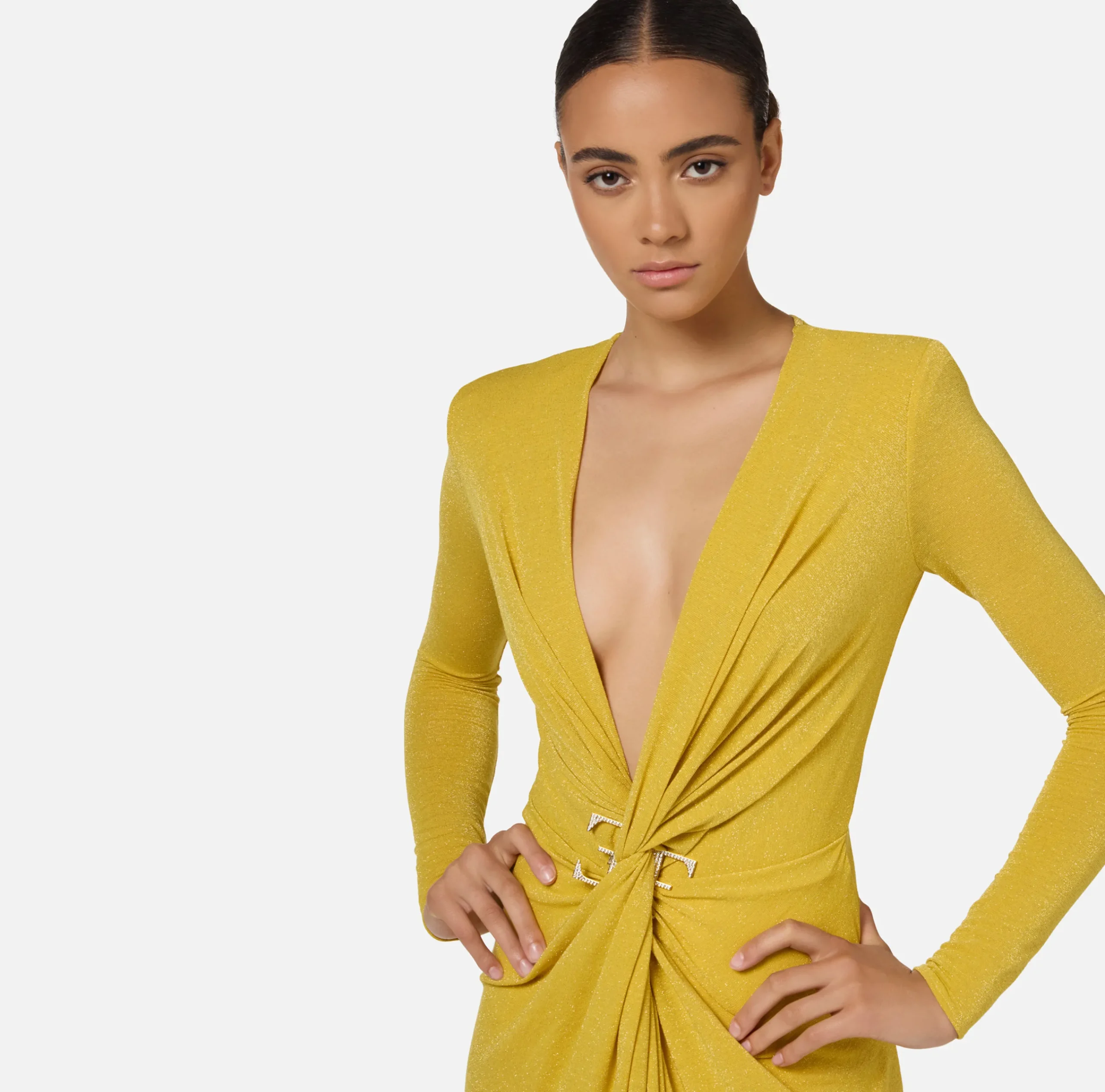Abiti|Abiti Red Carpet|Elisabetta Franchi Abito red carpet in jersey lurex con nodo e accessorio logo Mimosa