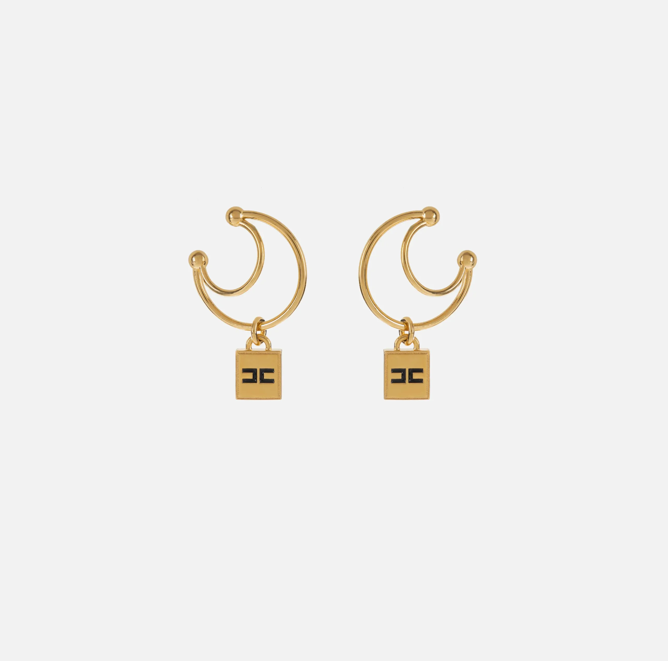 Bijoux|Elisabetta Franchi Earcuff con doppia anella e charms logo in ottone OroGiallo/Nero
