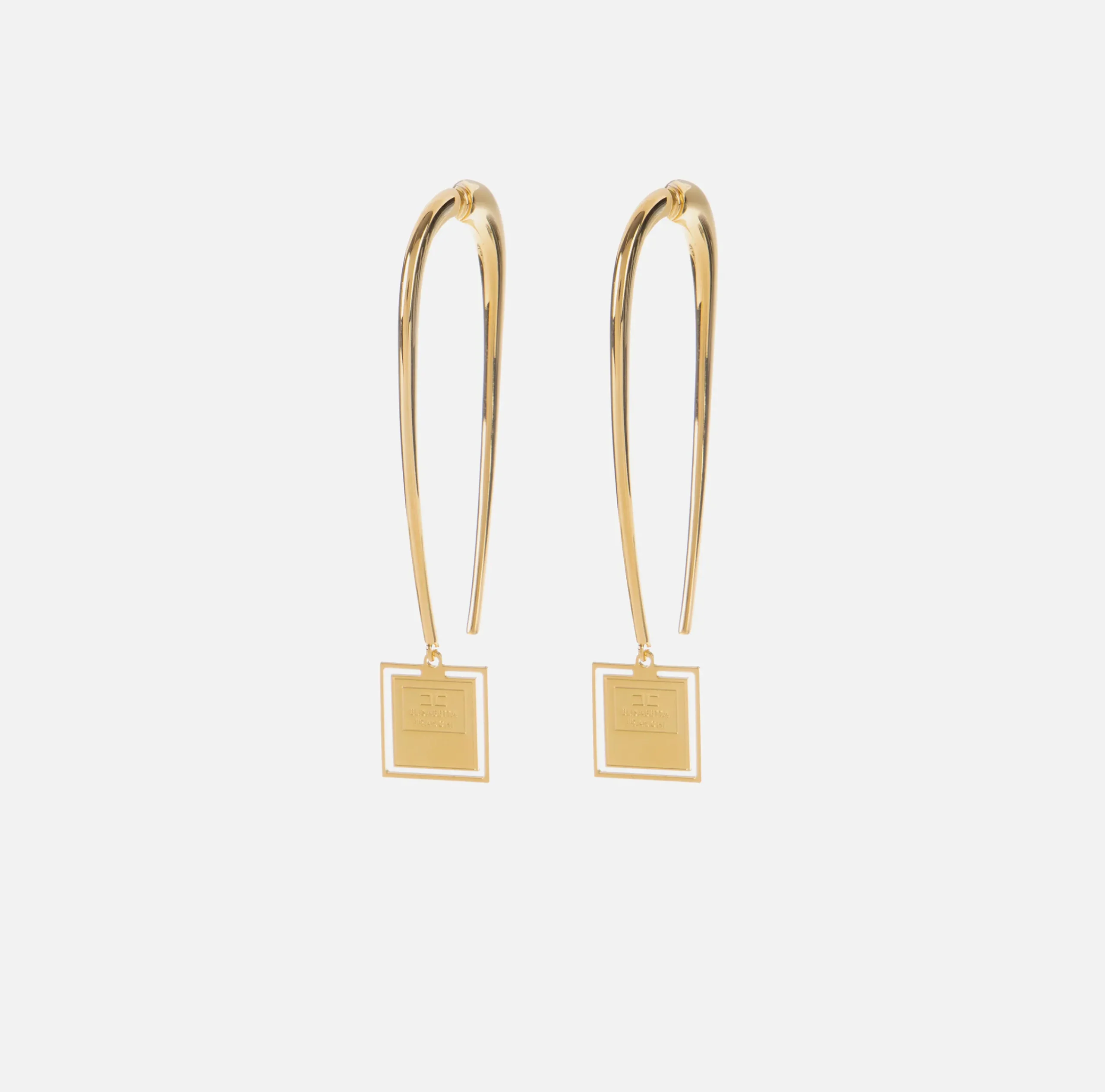Bijoux|Elisabetta Franchi Orecchini in metallo con placca logo quadrata OroGiallo