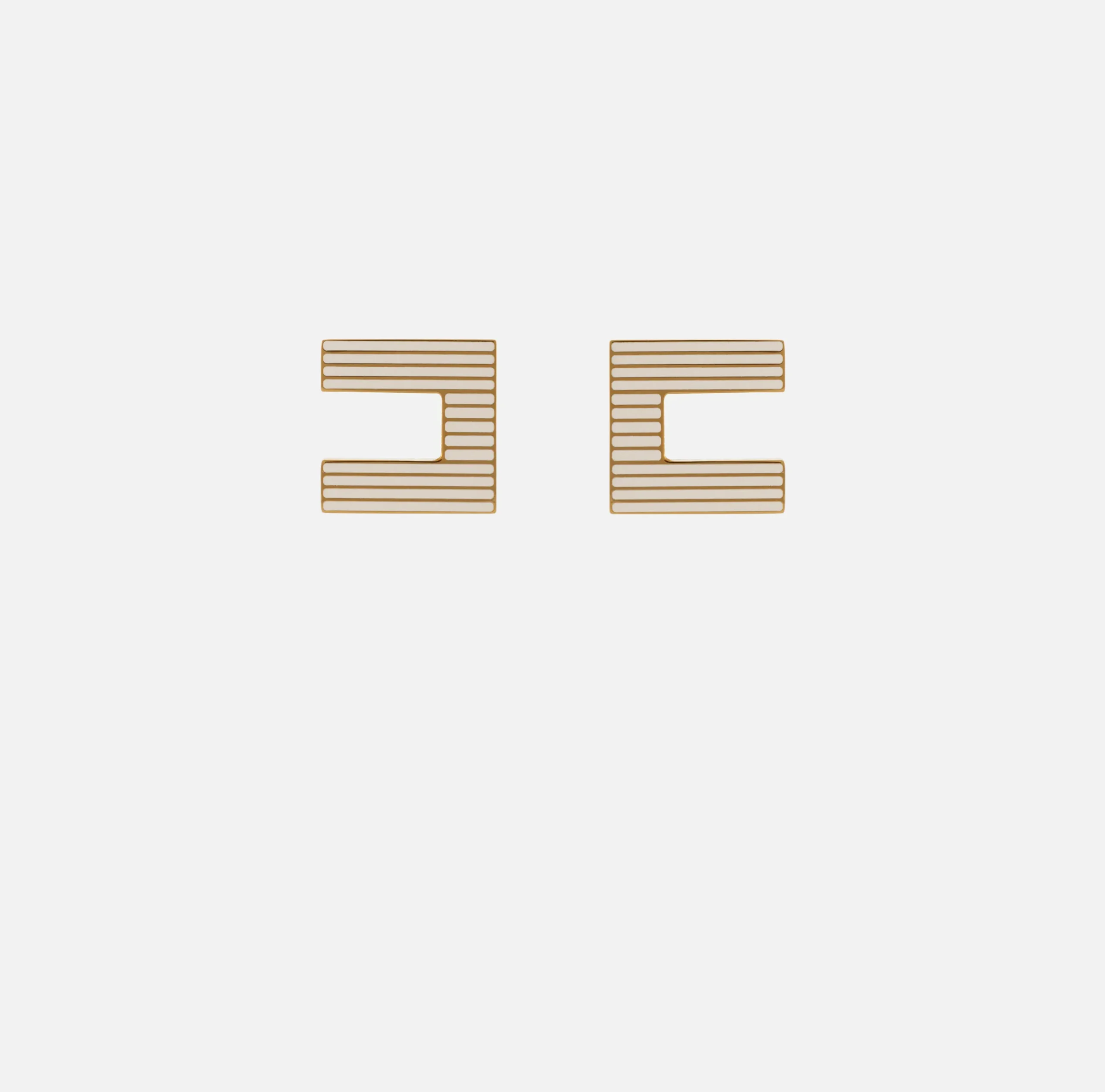 Bijoux|Elisabetta Franchi Orecchini logo in ottone a righe smaltate OroGiallo/Avorio