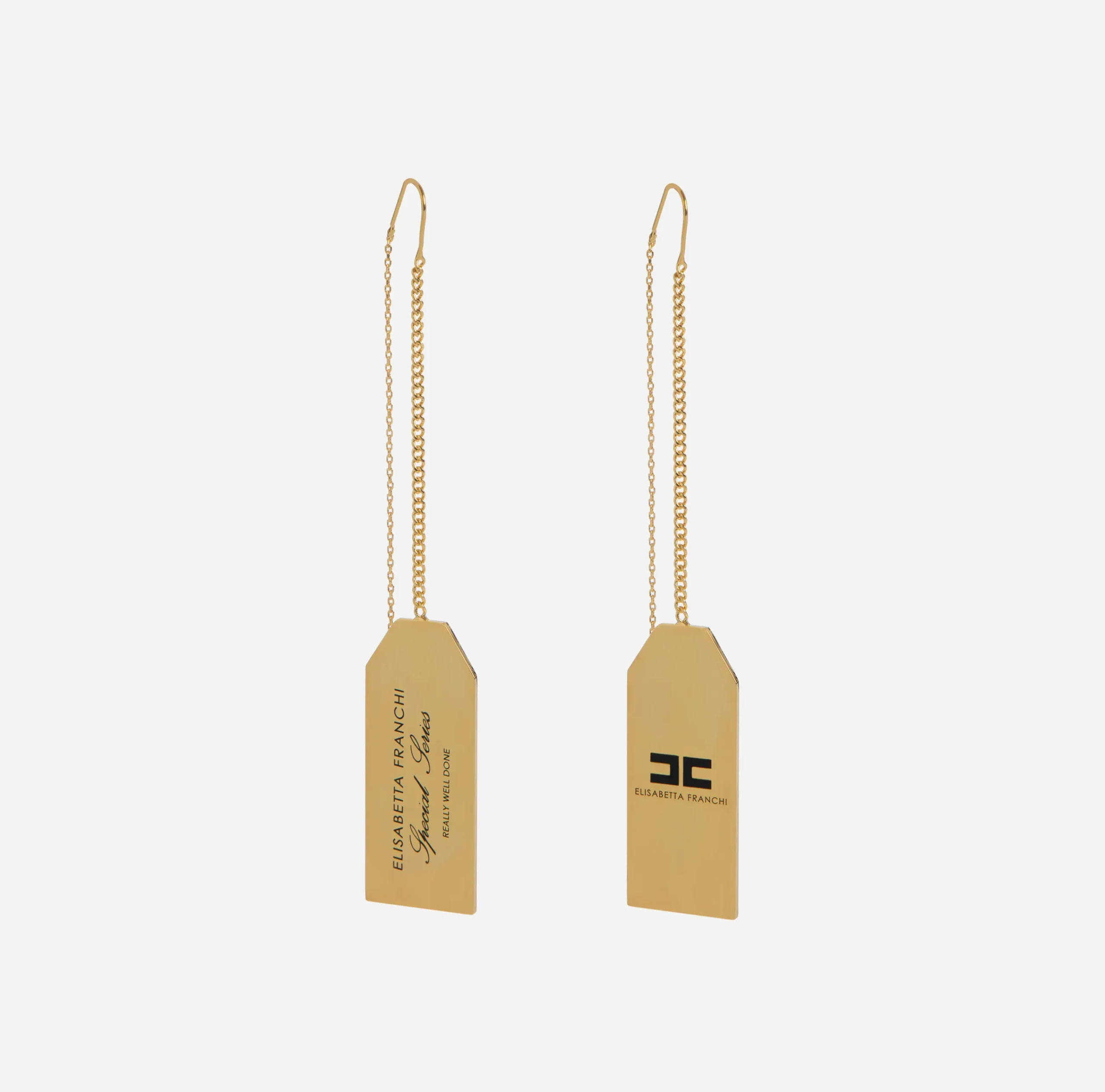 Bijoux|Elisabetta Franchi Orecchini pendenti in metallo con placca logo rettangolare OroGiallo