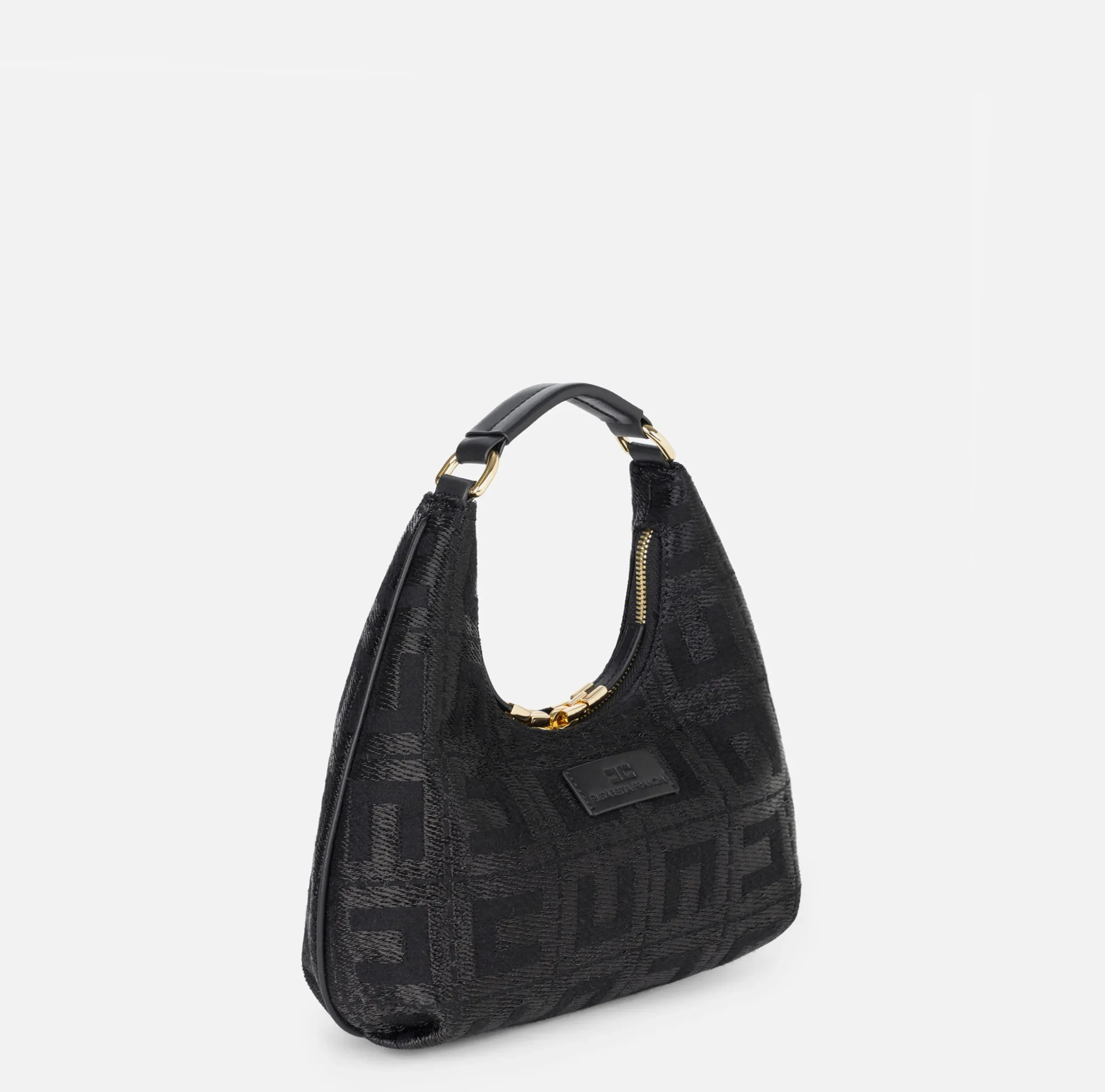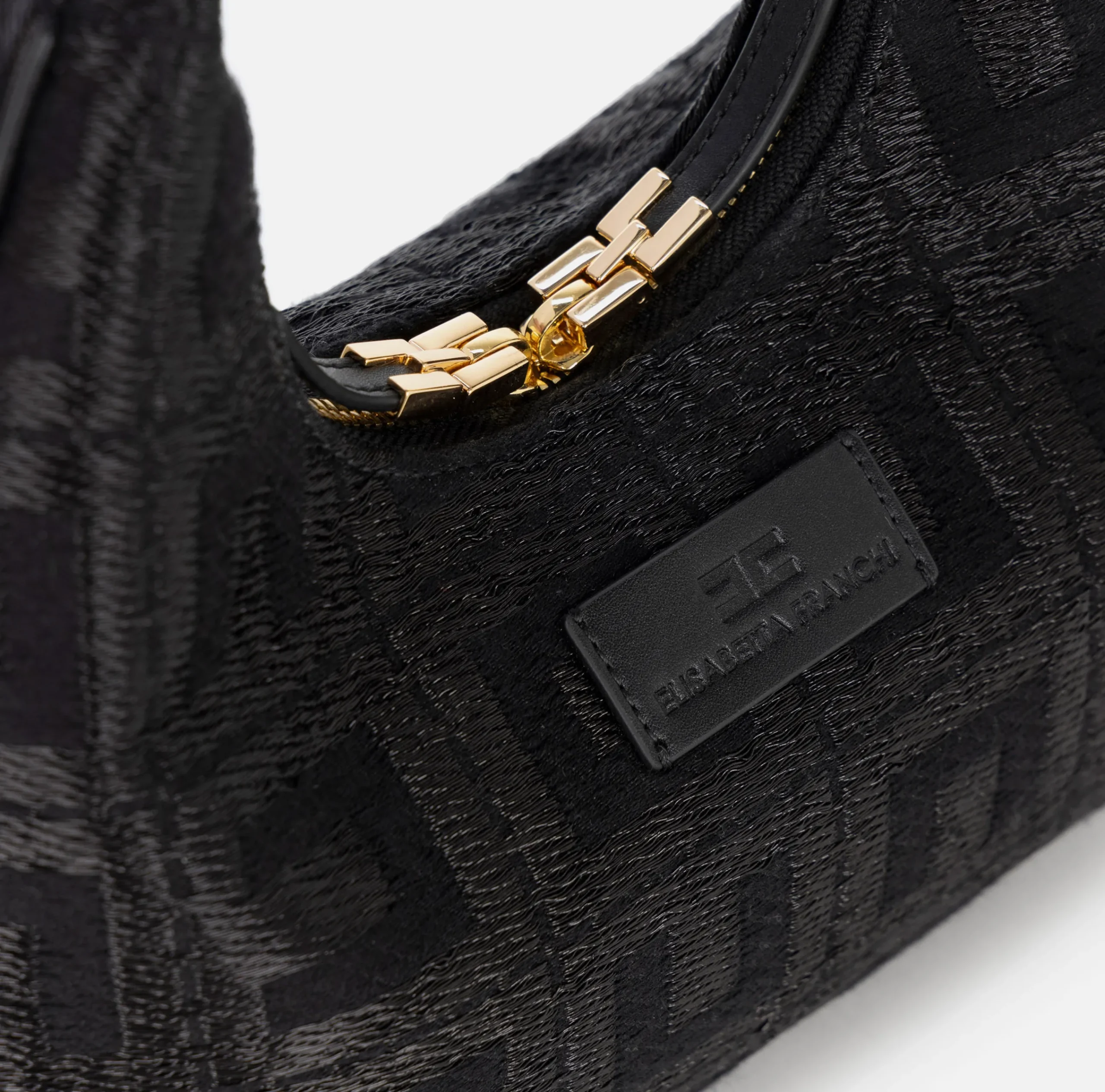 Borse A Mano|Elisabetta Franchi Borsa hobo in tessuto jacquard Nero