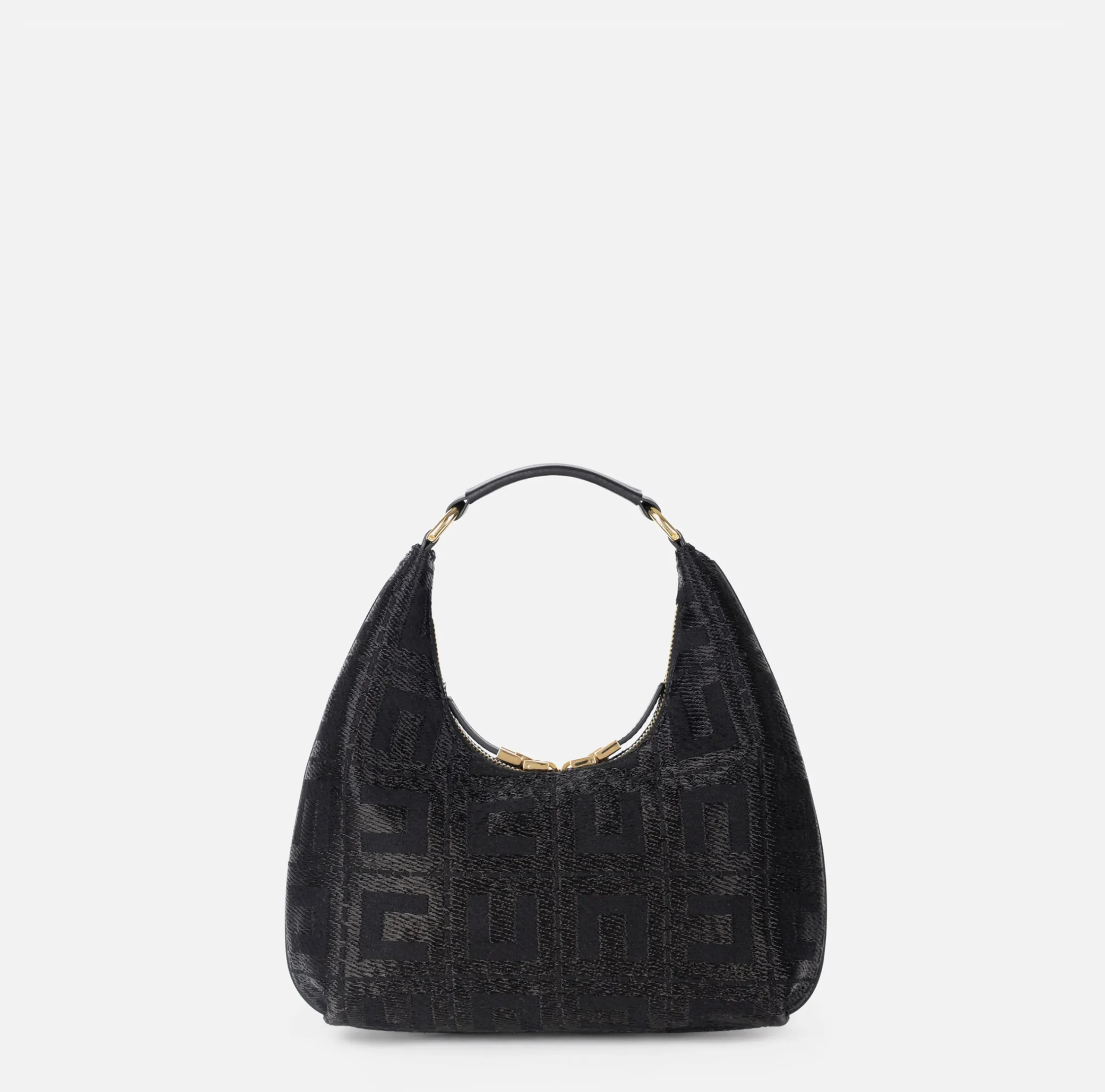 Borsa hobo in tessuto jacquard. È caratterizzata da etichetta logo in materiale sintetico effetto pelle.