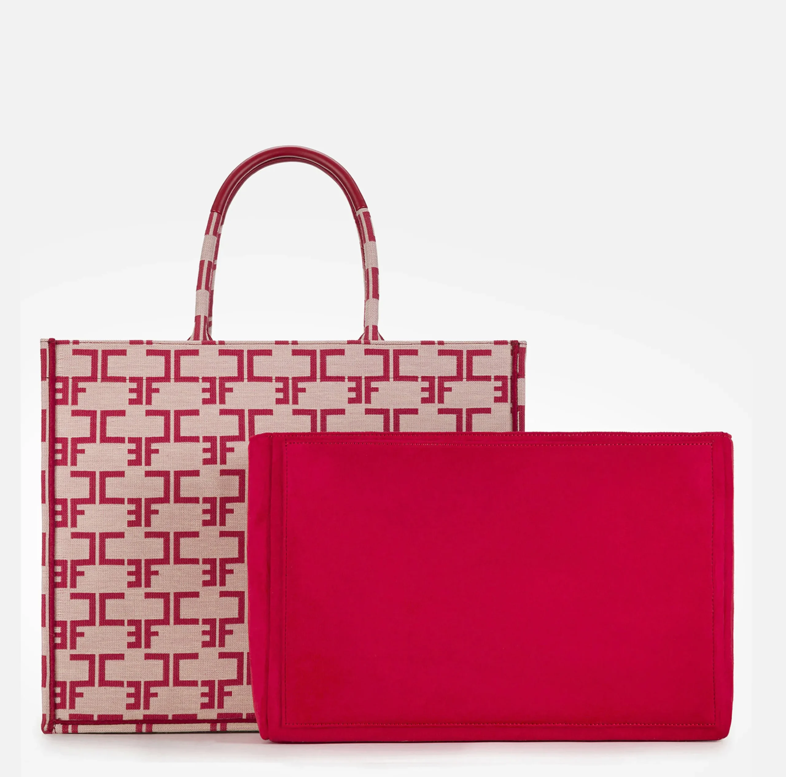Borse A Mano|Elisabetta Franchi Borsa Monogram Grande Con Organizer Burro/Rosso