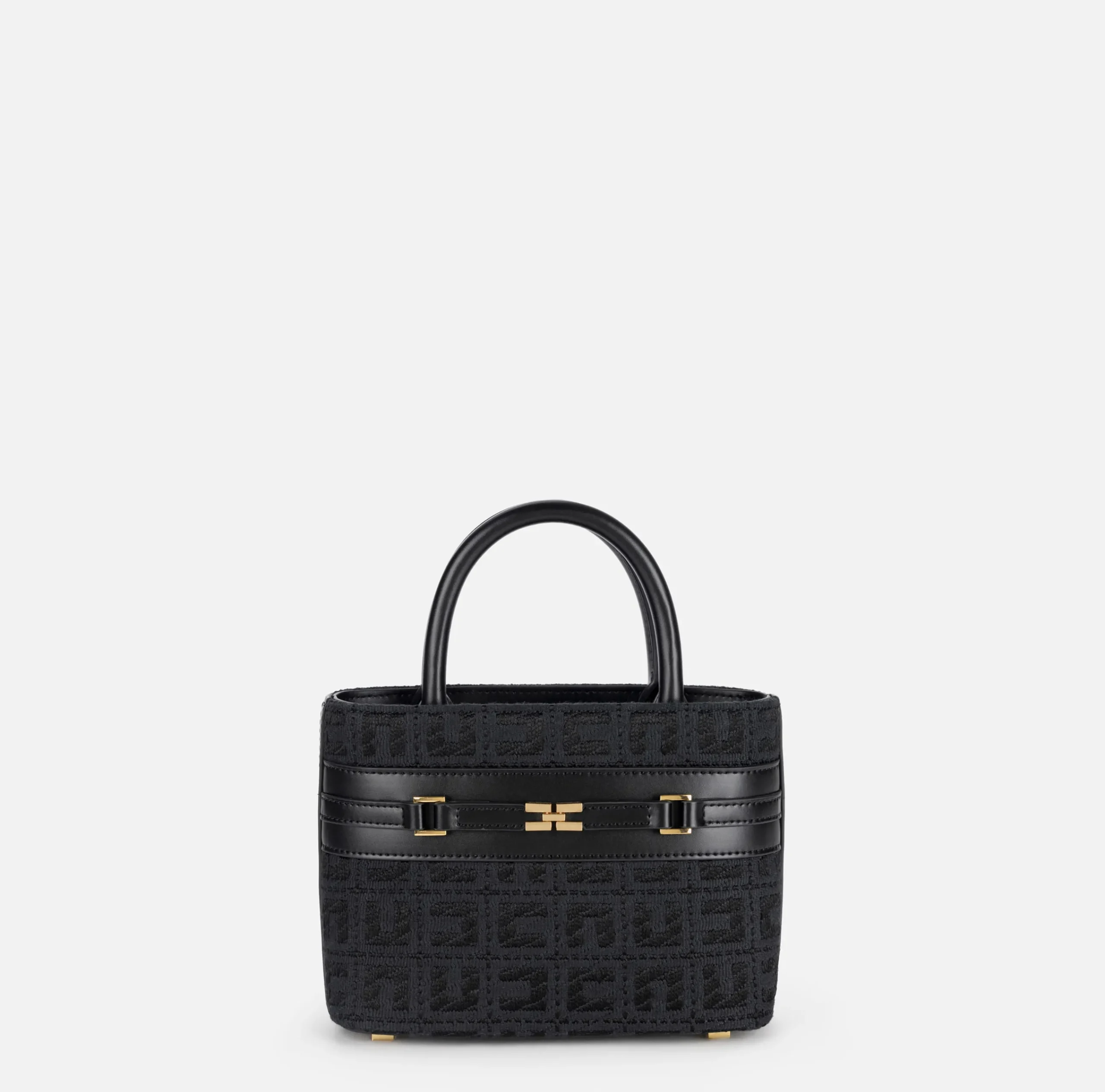Borse A Mano|Elisabetta Franchi Shopper piccola in tessuto jacquard con morsetto Nero