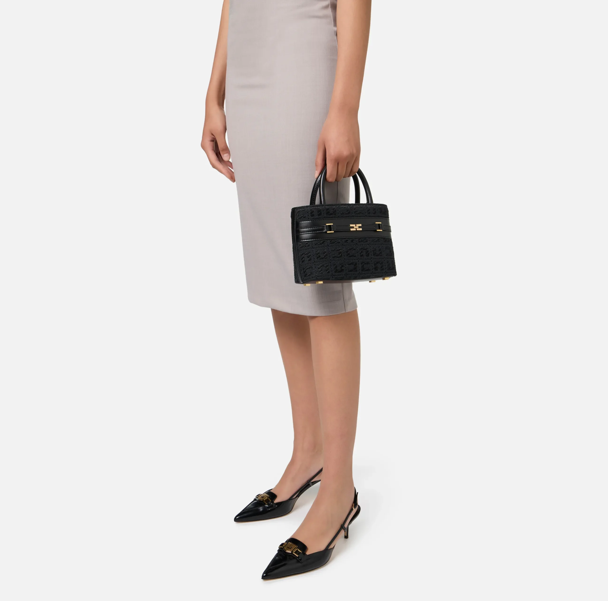 Be the first to review “Borse A Mano|Elisabetta Franchi Shopper piccola in tessuto jacquard con morsetto Nero” Annulla risposta