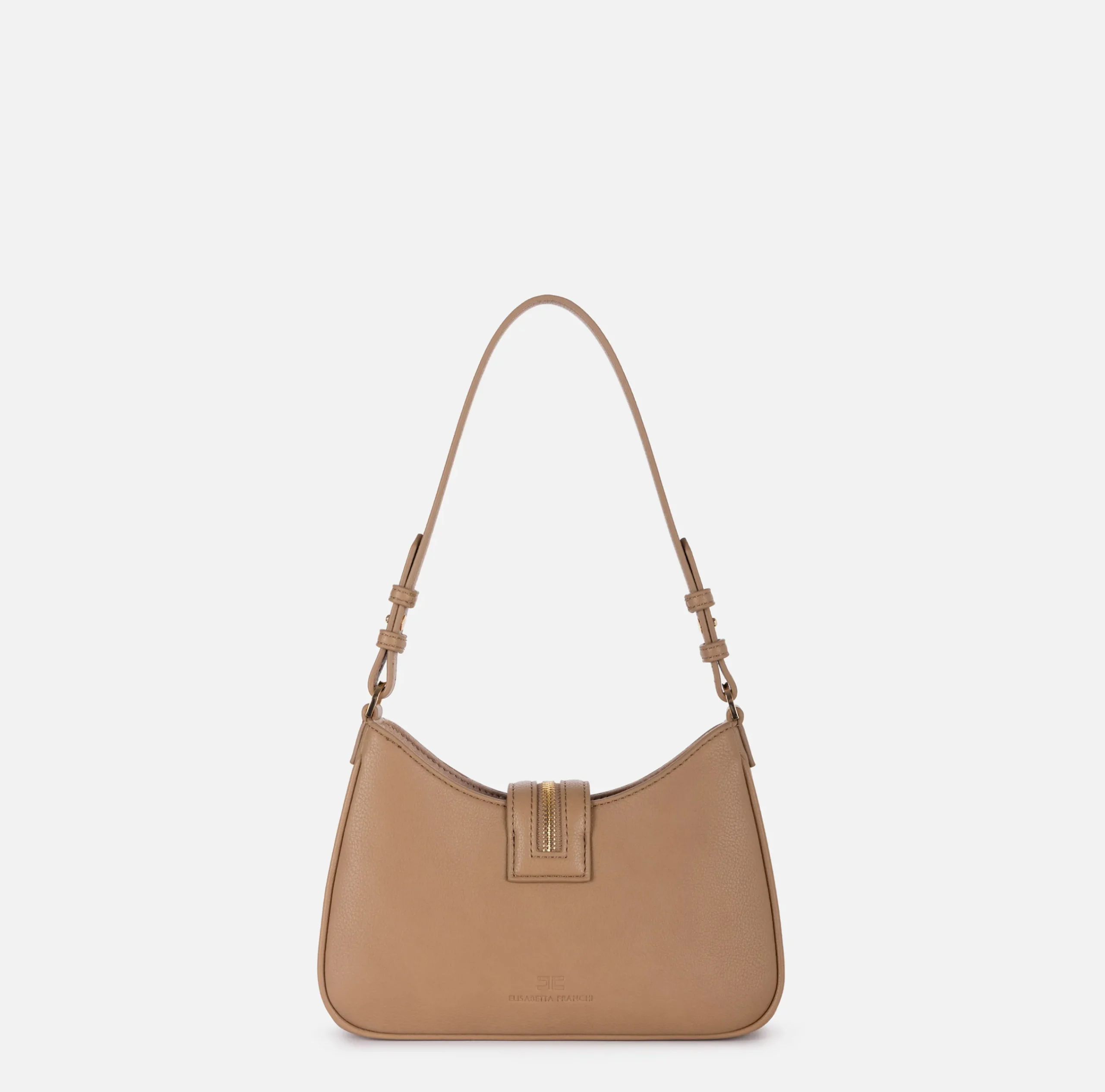 Borse A Spalla|Elisabetta Franchi Borsa hobo piccola in materiale effetto pelle con zip Camel