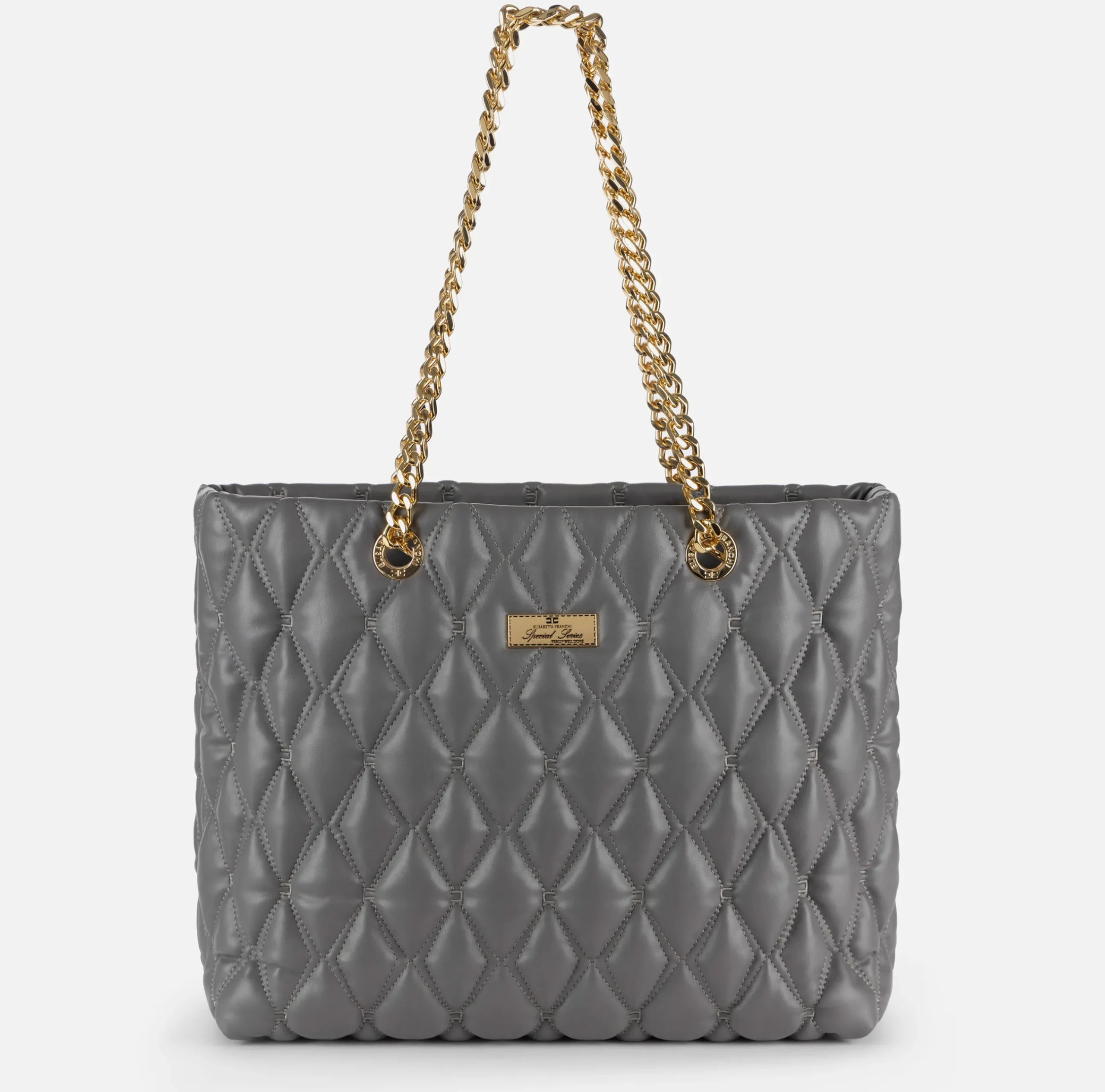 Be the first to review “Borse A Spalla|Elisabetta Franchi Shopper in tessuto embossed con manici in catena Steel” Annulla risposta