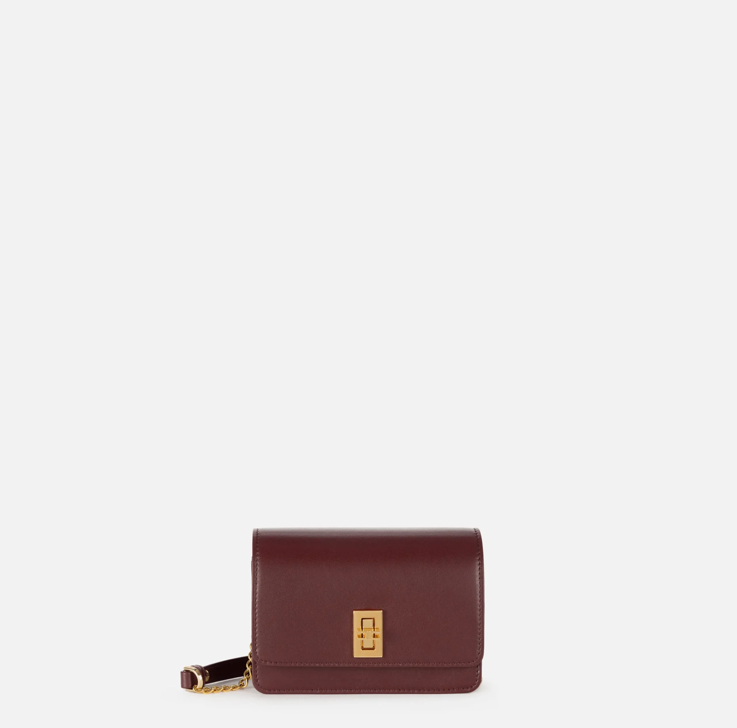 Borsa a tracolla in nappa lucida. È caratterizzata da patta con girello logo e tracolla groumette in metallo dorato.