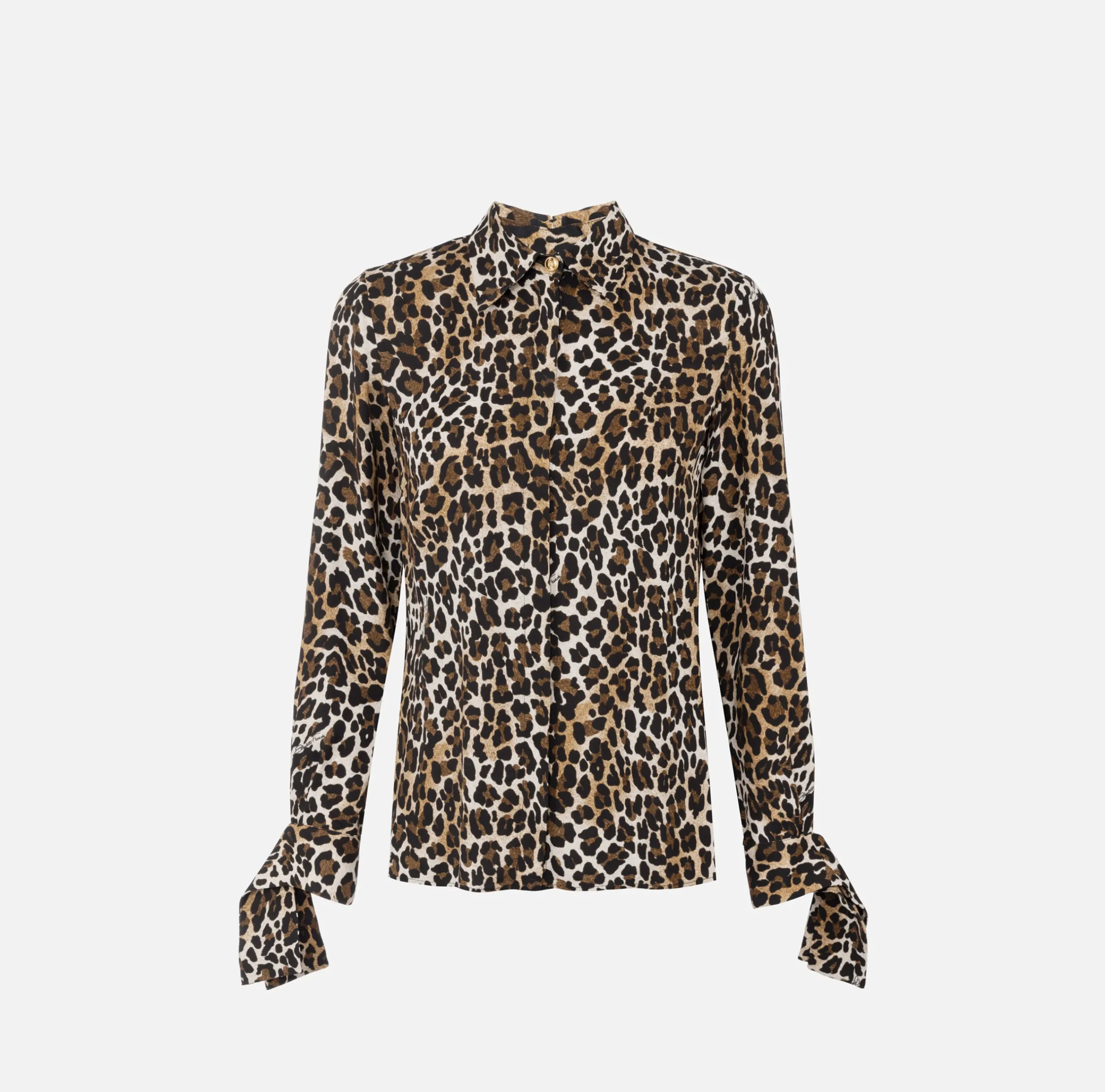 Camicia in georgette di viscosa stampa animalier con maniche lunghe e polsi a nastro.