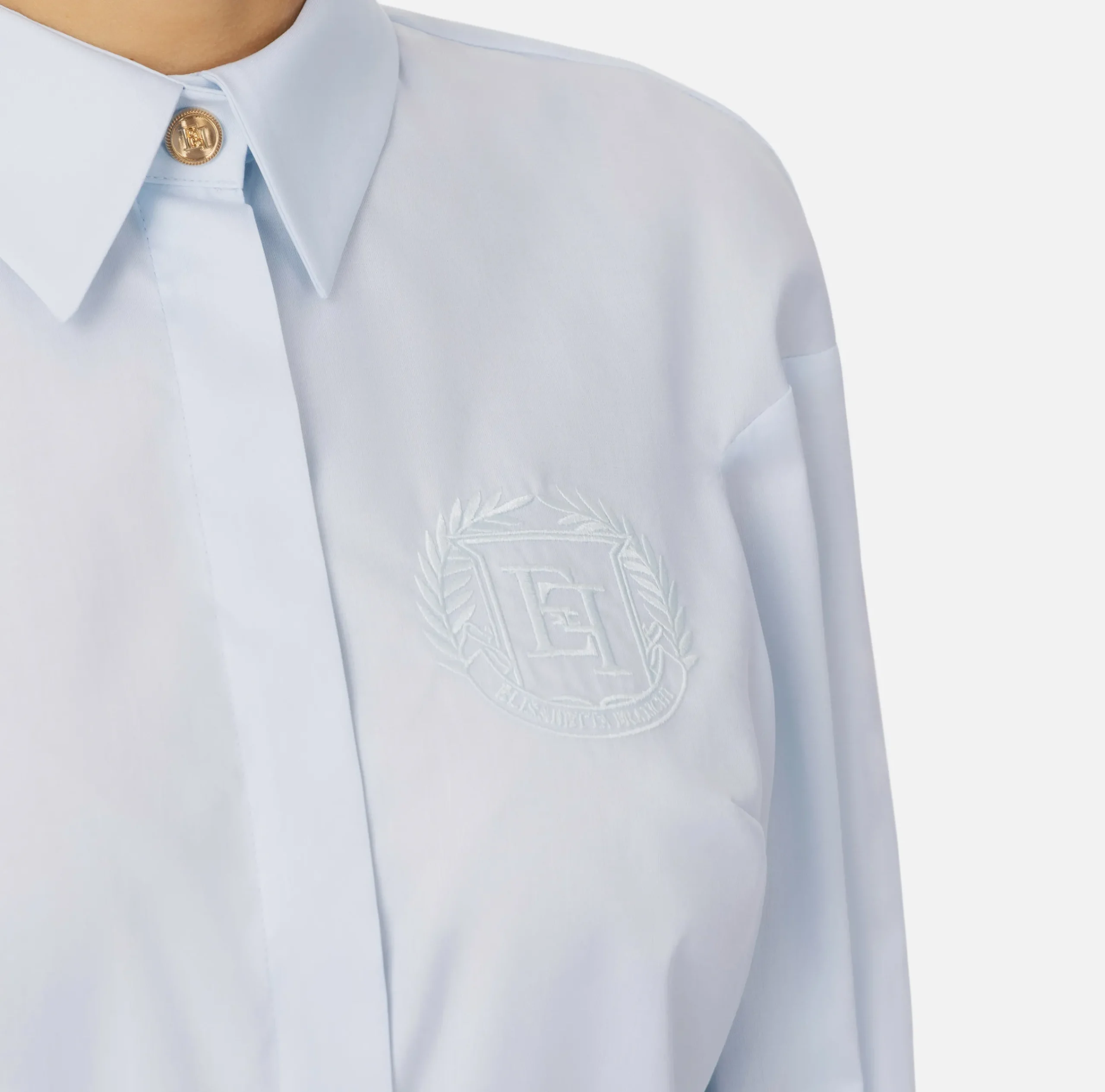 Be the first to review “Camicie E Bluse|Elisabetta Franchi Camicia in popeline di cotone con arricciatura e stemma logo Skyblue” Annulla risposta