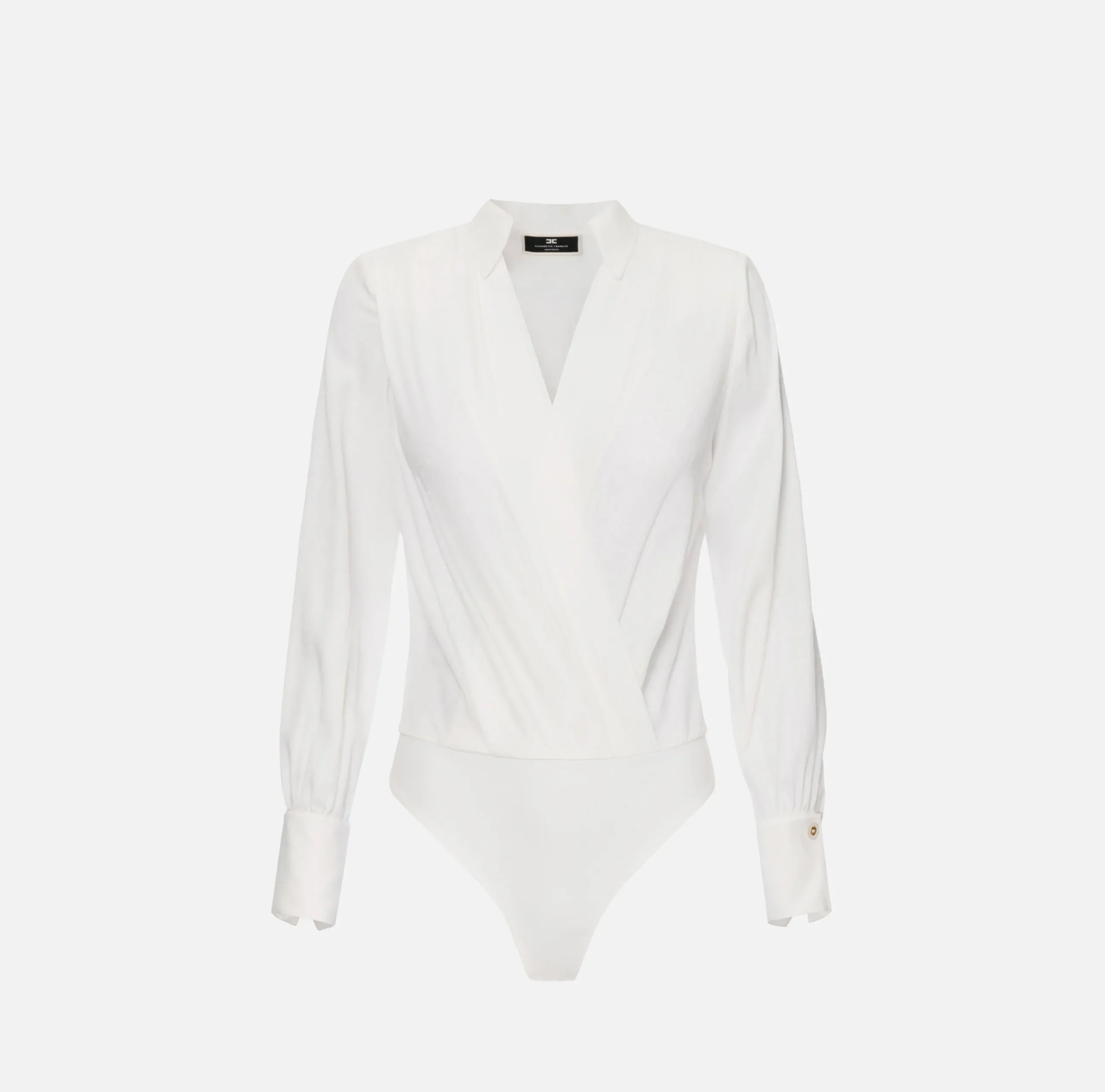 Camicie E Bluse|Top, T-Shirt & Body|Elisabetta Franchi Camicia body in georgette jacquard lettering Avorio