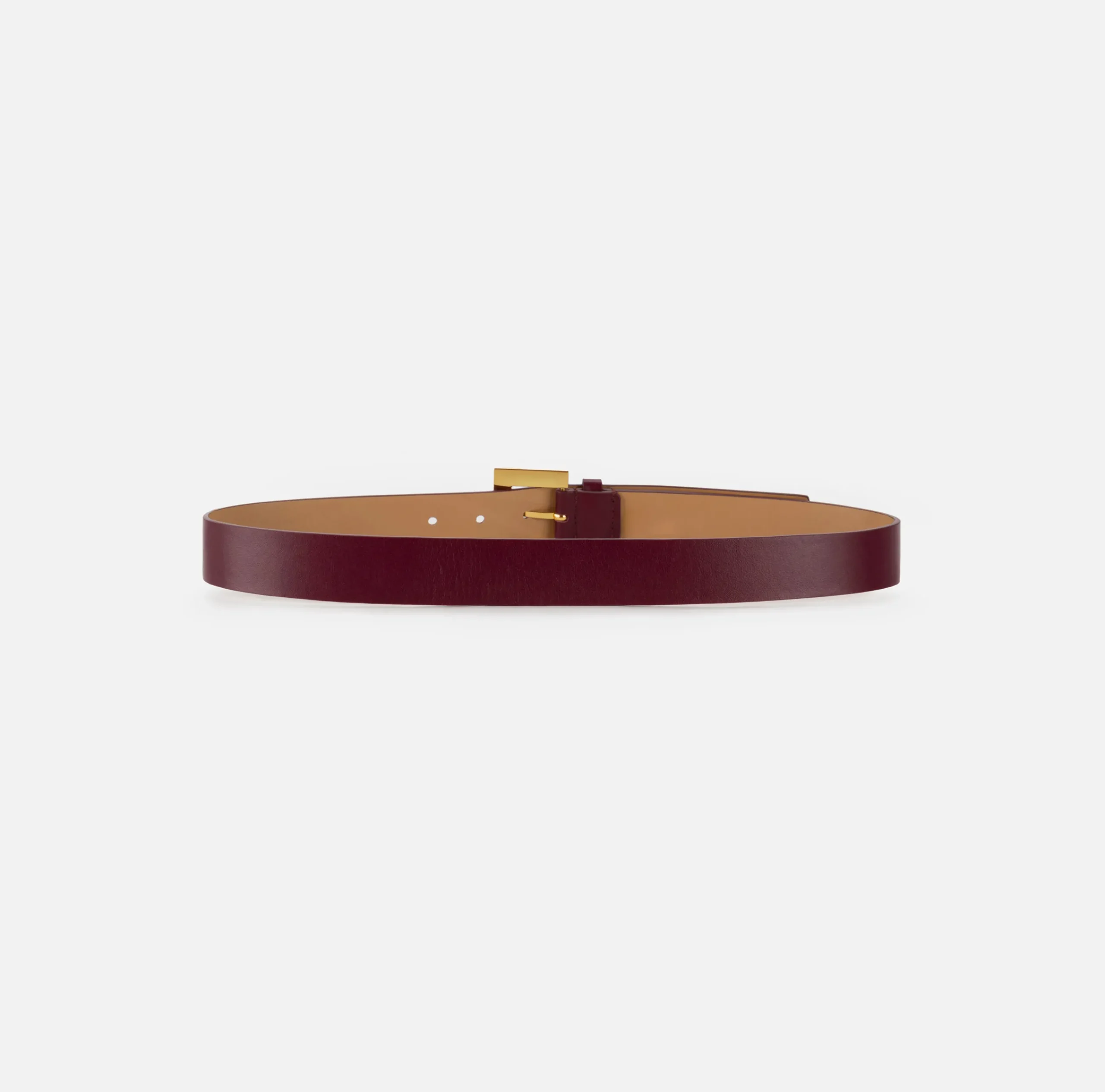 Cintura in vera pelle bombata con fibbia e ardiglione. È caratterizzata da stampa logo a fuoco in lamina dorata a fine asta.