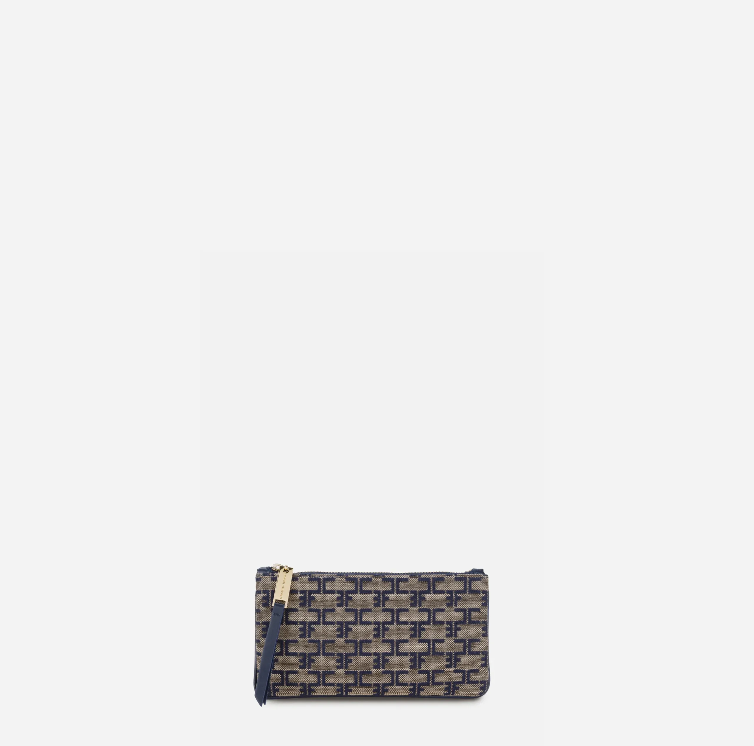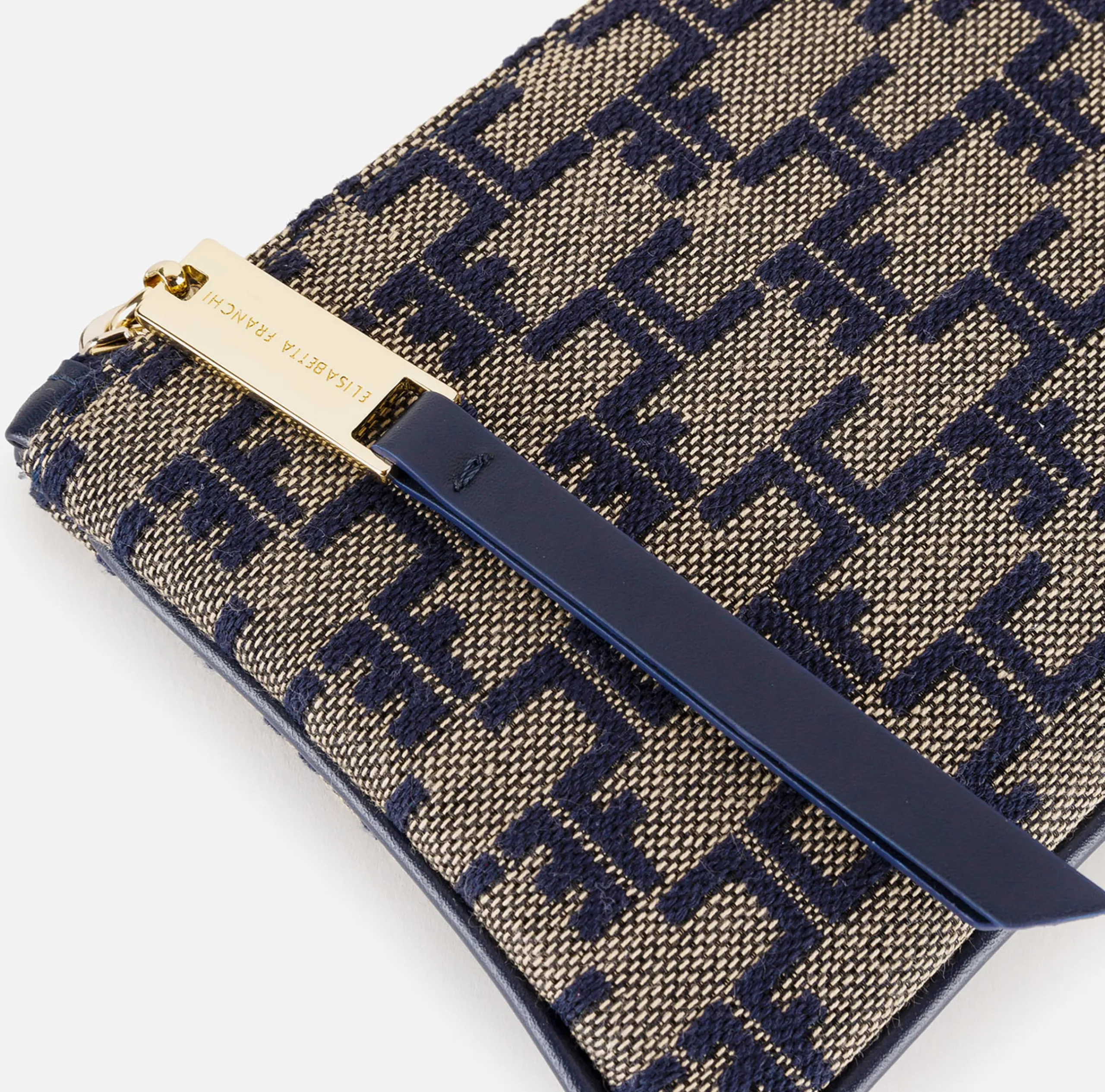 Clutch|Elisabetta Franchi Bustina Monogram Cammello/Blu