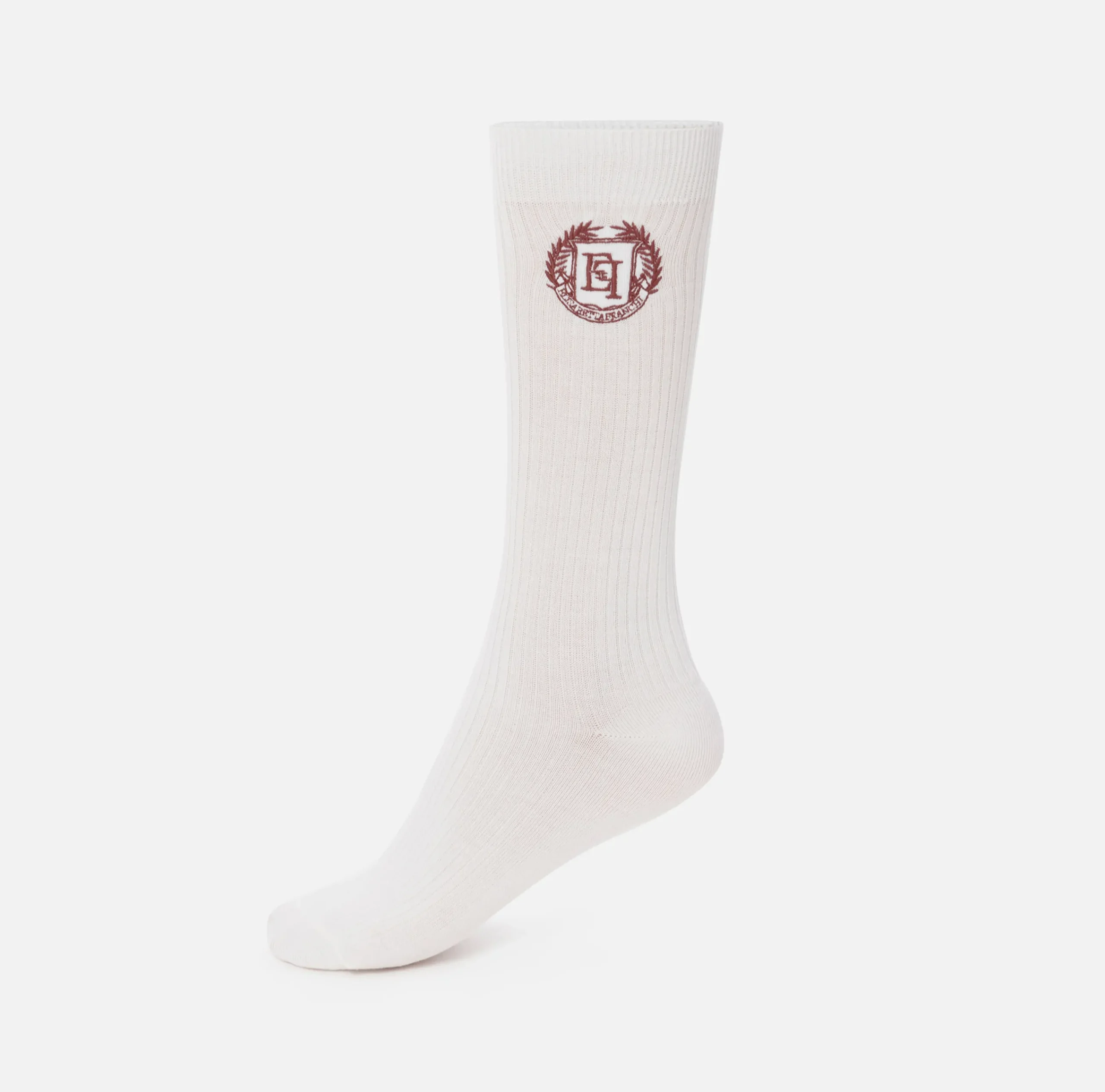 Calzini corti in cashmere a coste. Sono caratterizzati da stemma logo ricamato in contrasto colore sul gambale esterno.