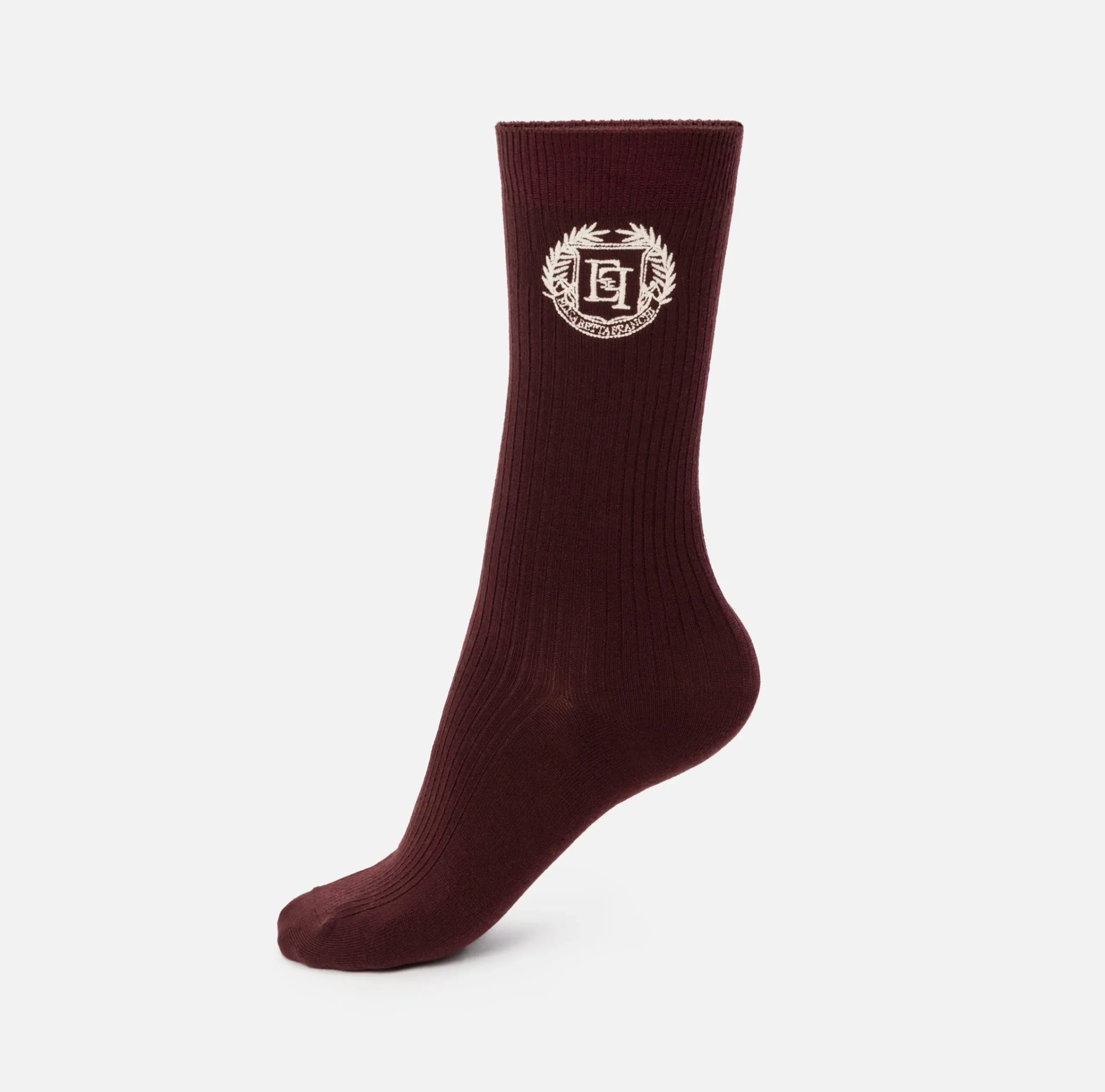 Calzini corti in cashmere a coste. Sono caratterizzati da stemma logo ricamato in contrasto colore sul gambale esterno.