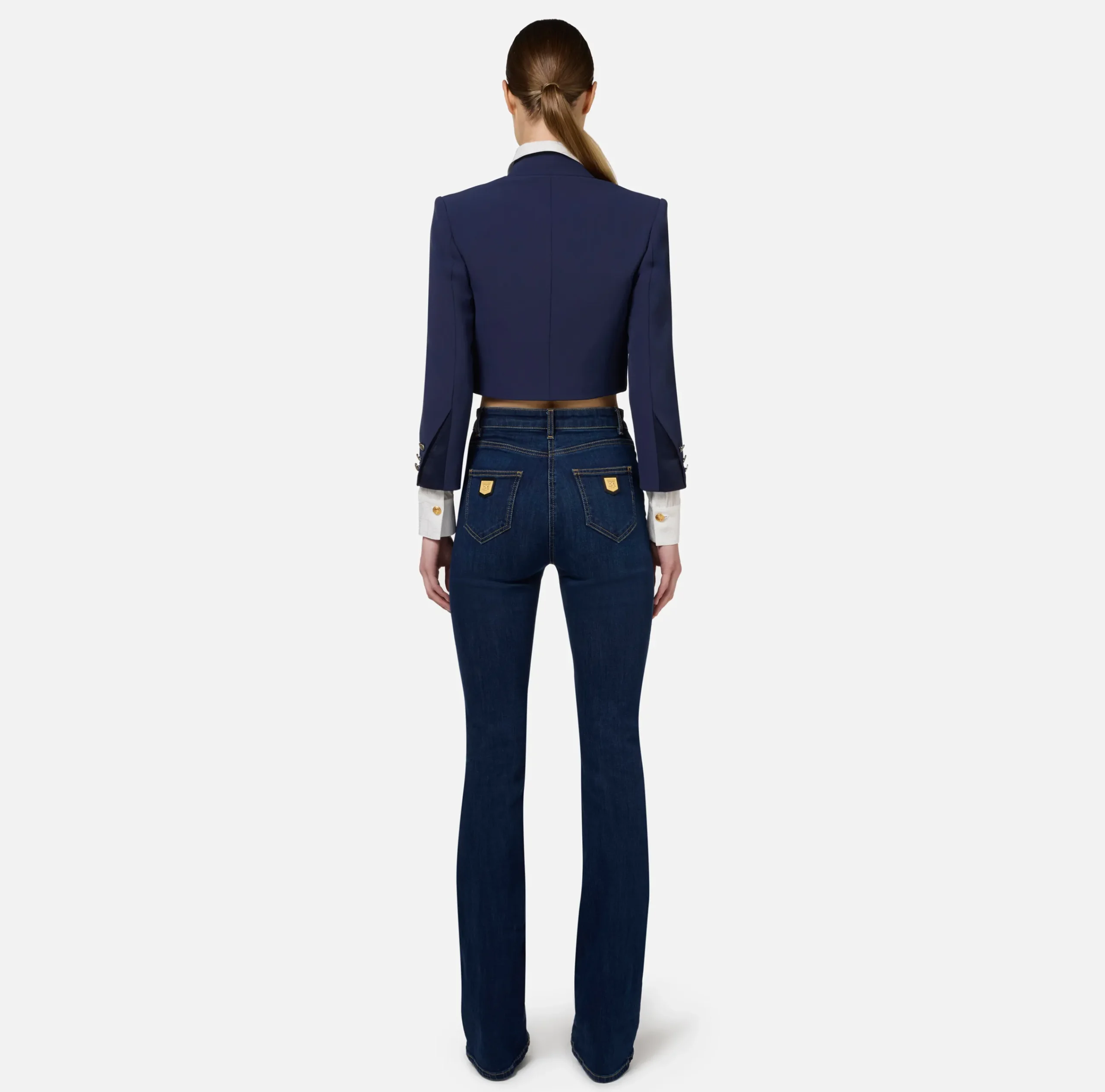 Giacche & Trench|Elisabetta Franchi Giacca cropped in crêpe con revers in raso Navy