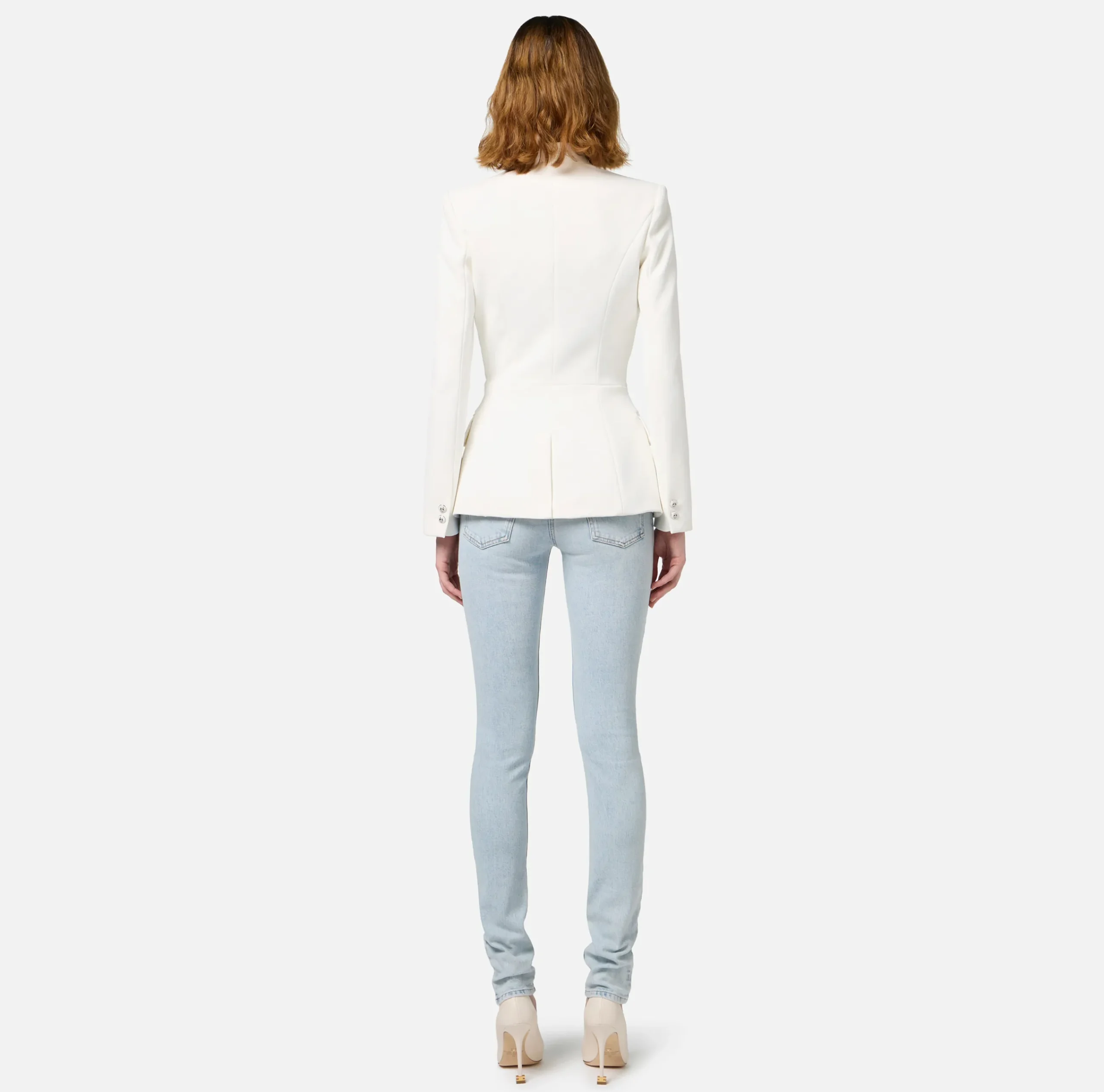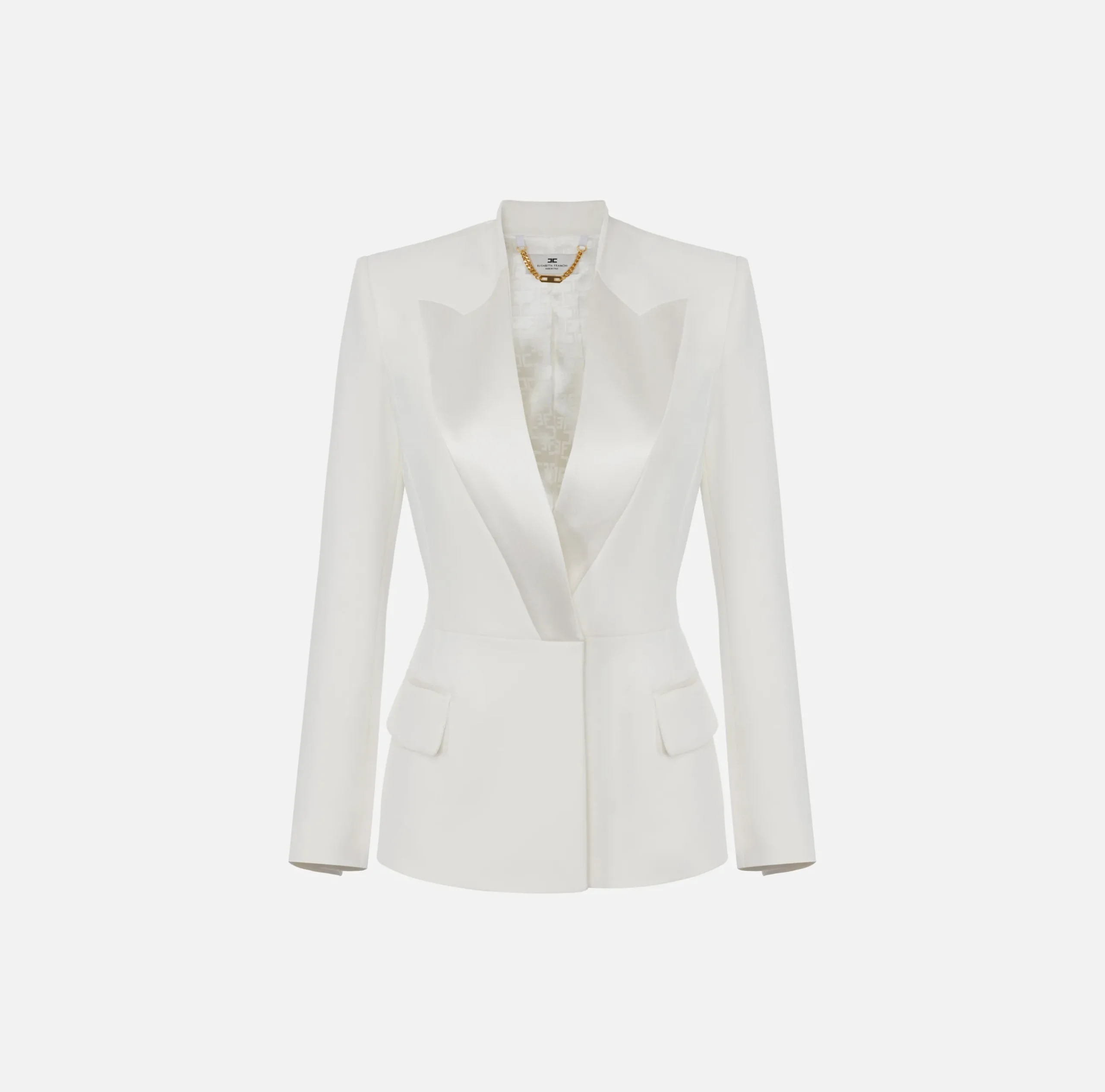 Be the first to review “Giacche & Trench|Elisabetta Franchi Giacca doppiopetto in crêpe con revers in raso Avorio” Annulla risposta