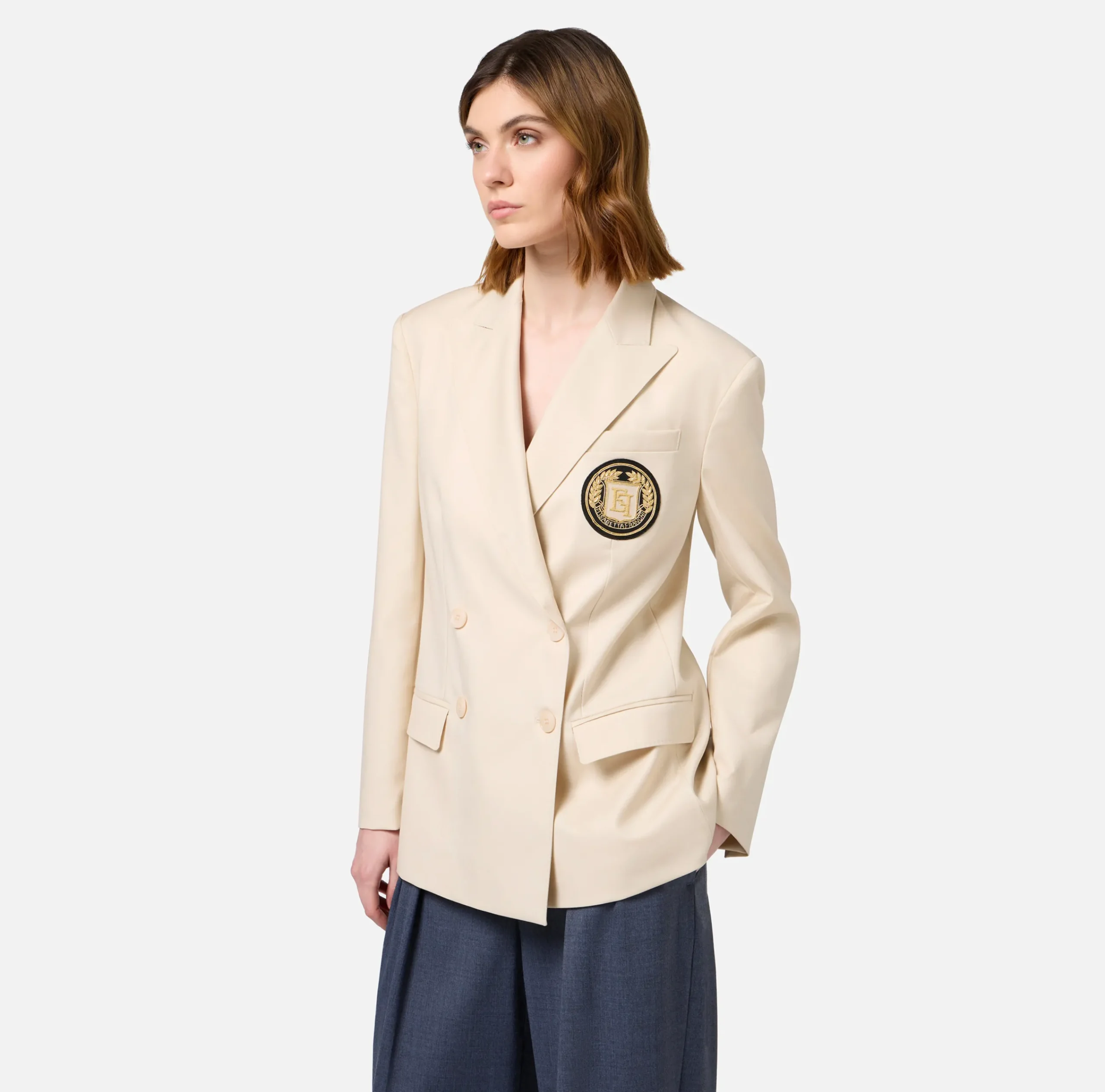 Giacche & Trench|Elisabetta Franchi Giacca doppiopetto in fresco di lana con patch Crema