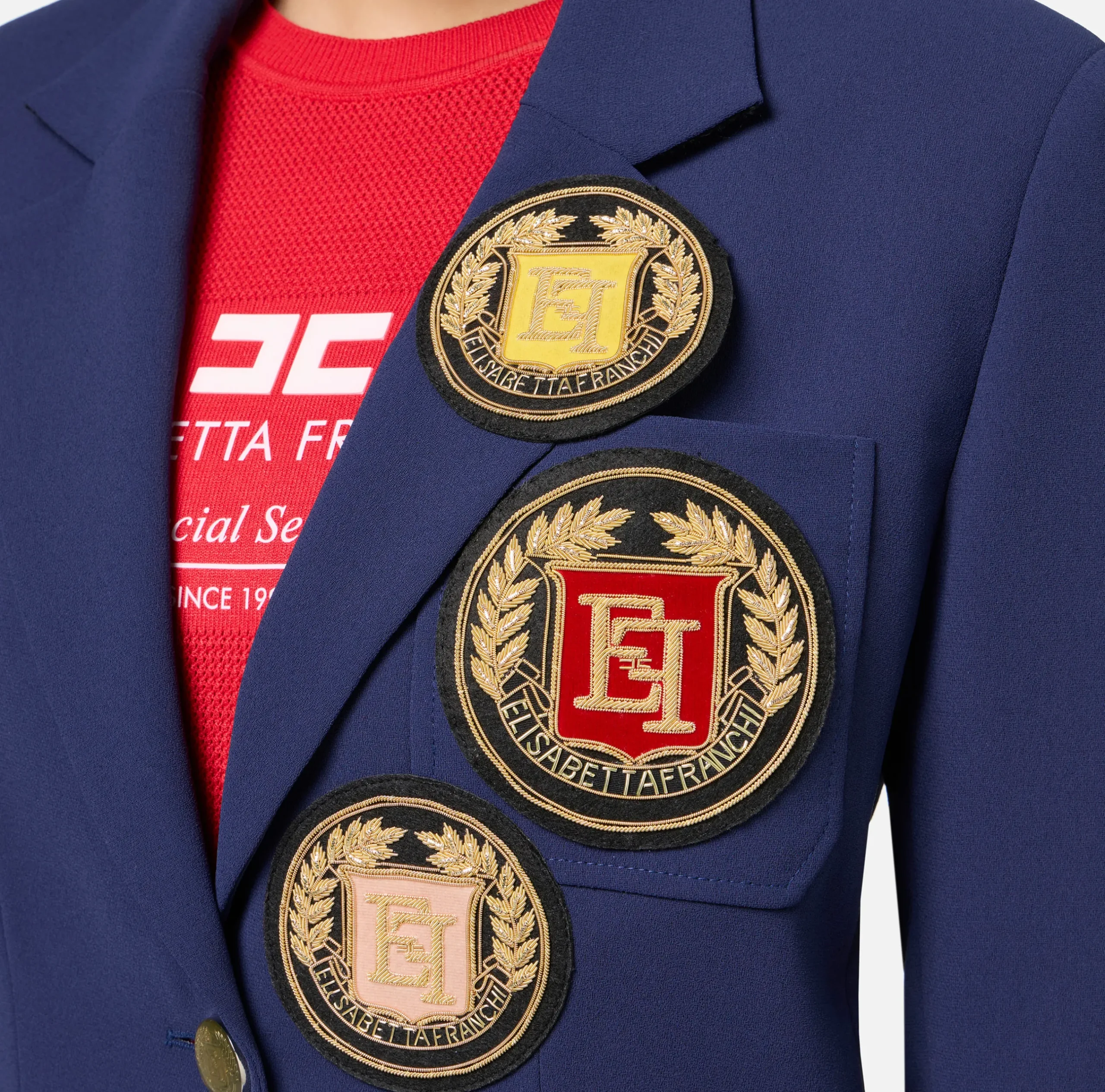 Giacche & Trench|Elisabetta Franchi Giacca in crêpe con patch Navy