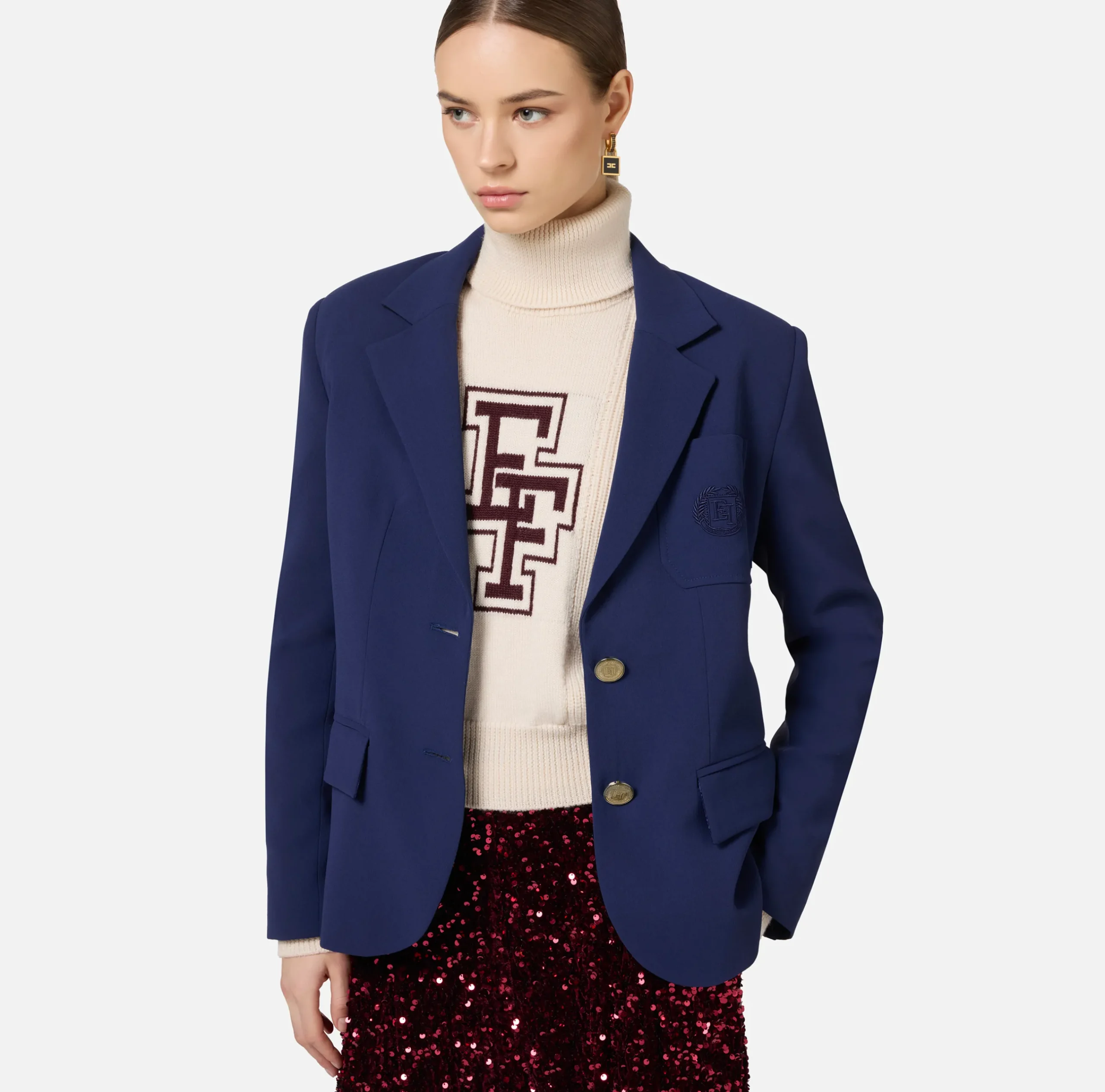 Giacche & Trench|Elisabetta Franchi Giacca in crêpe con ricamo stemma Navy