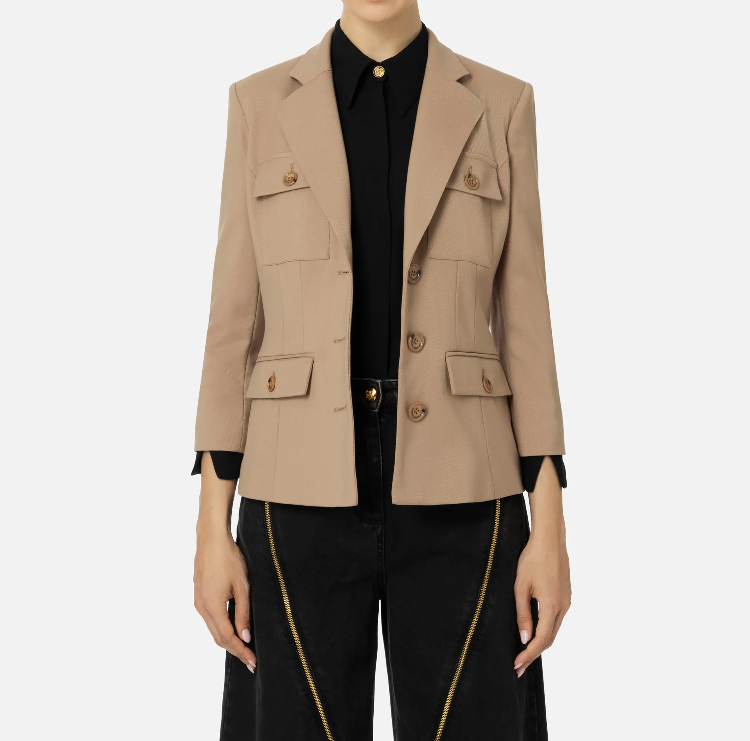 Be the first to review “Giacche & Trench|Elisabetta Franchi Giacca monopetto in fresco di lana con tasche Camel” Annulla risposta
