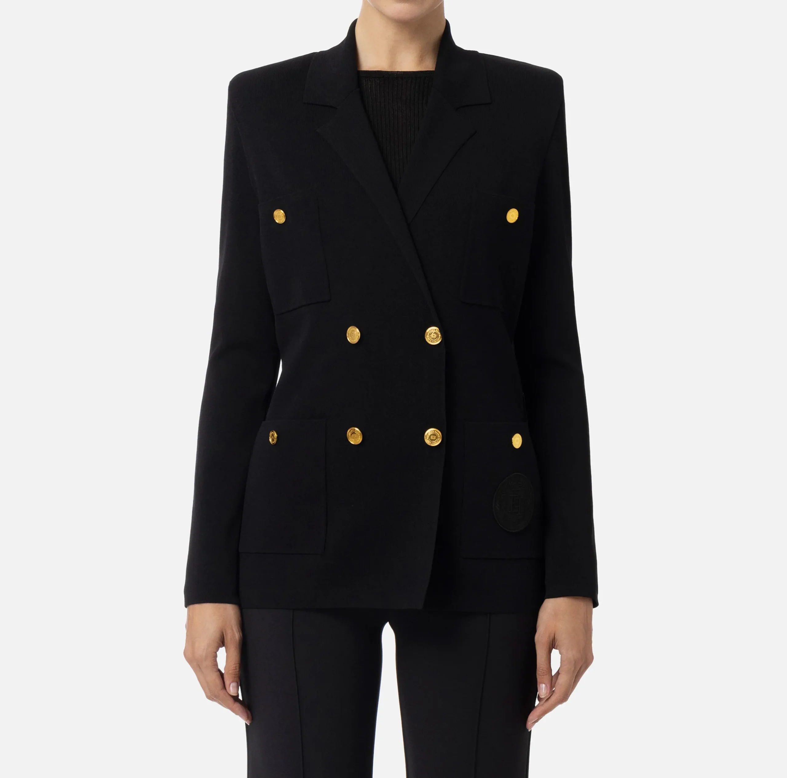 Giacche & Trench|Maglieria E Felpe|Elisabetta Franchi Giacca doppiopetto in viscosa con patch logo Nero