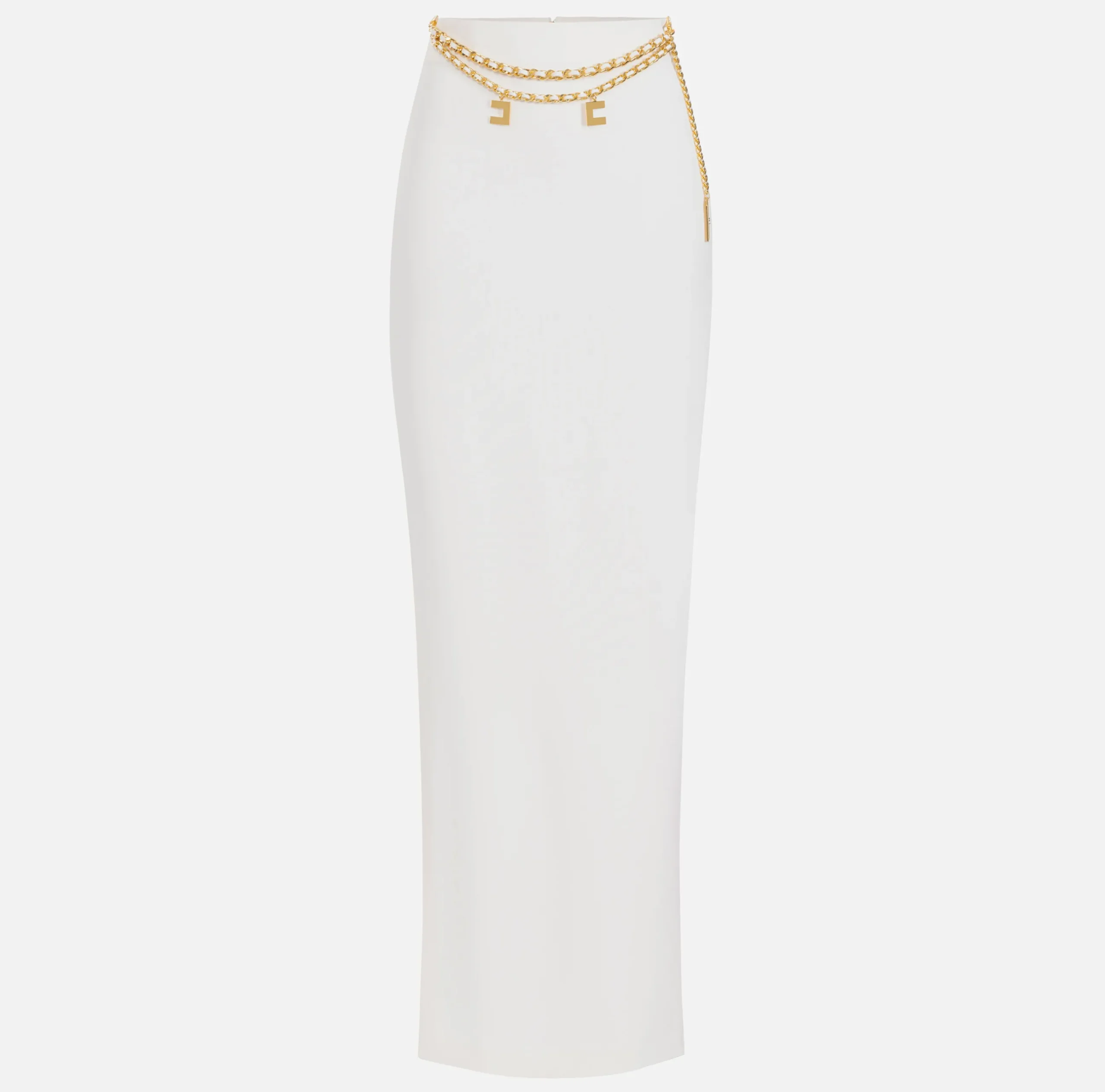 Gonne|Elisabetta Franchi Gonna lunga in crêpe leggero con catena Avorio