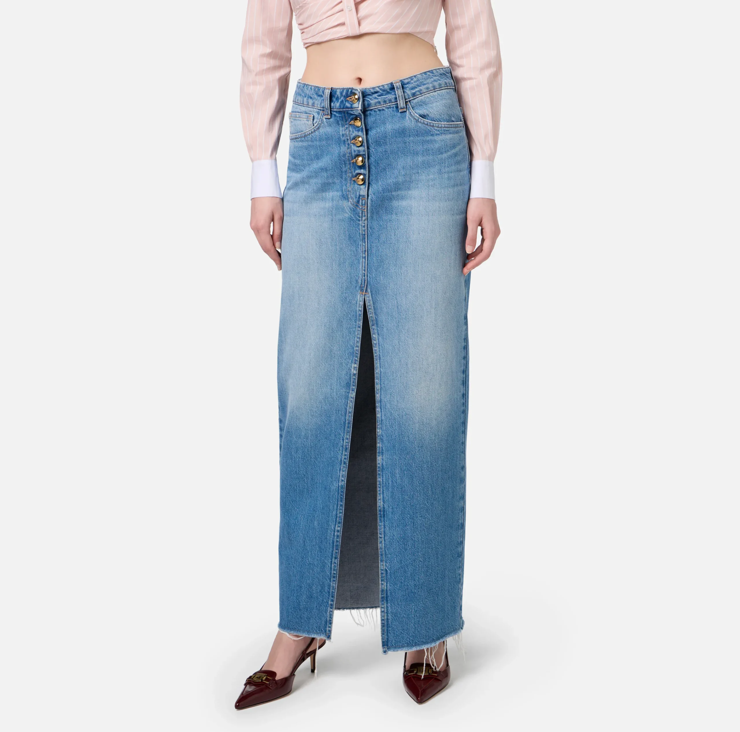 Gonne|Elisabetta Franchi Gonna lunga in denim con spacco Lightdenim