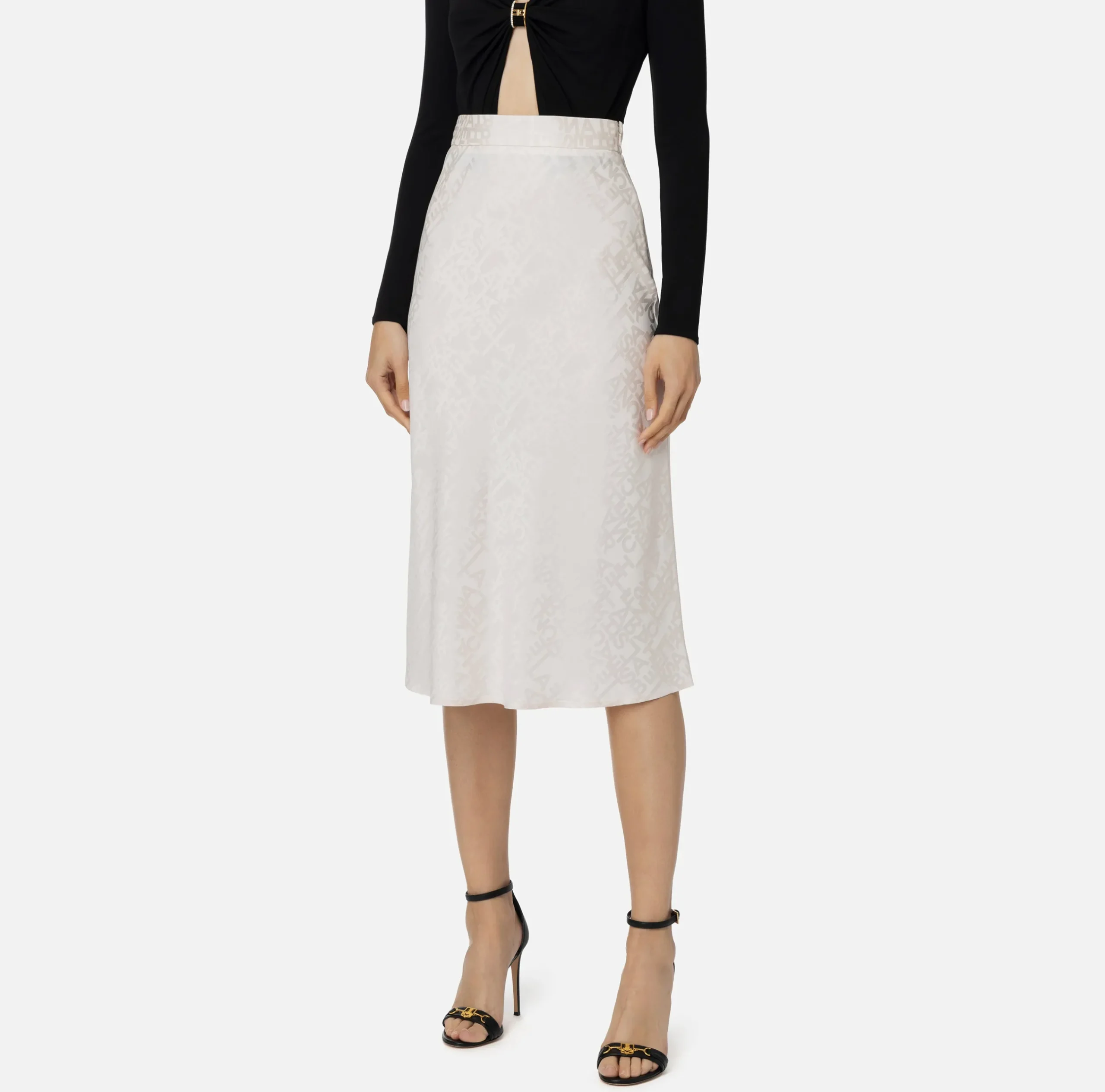 Gonne|Elisabetta Franchi Gonna midi in crêpe jaquard lettering Lattice