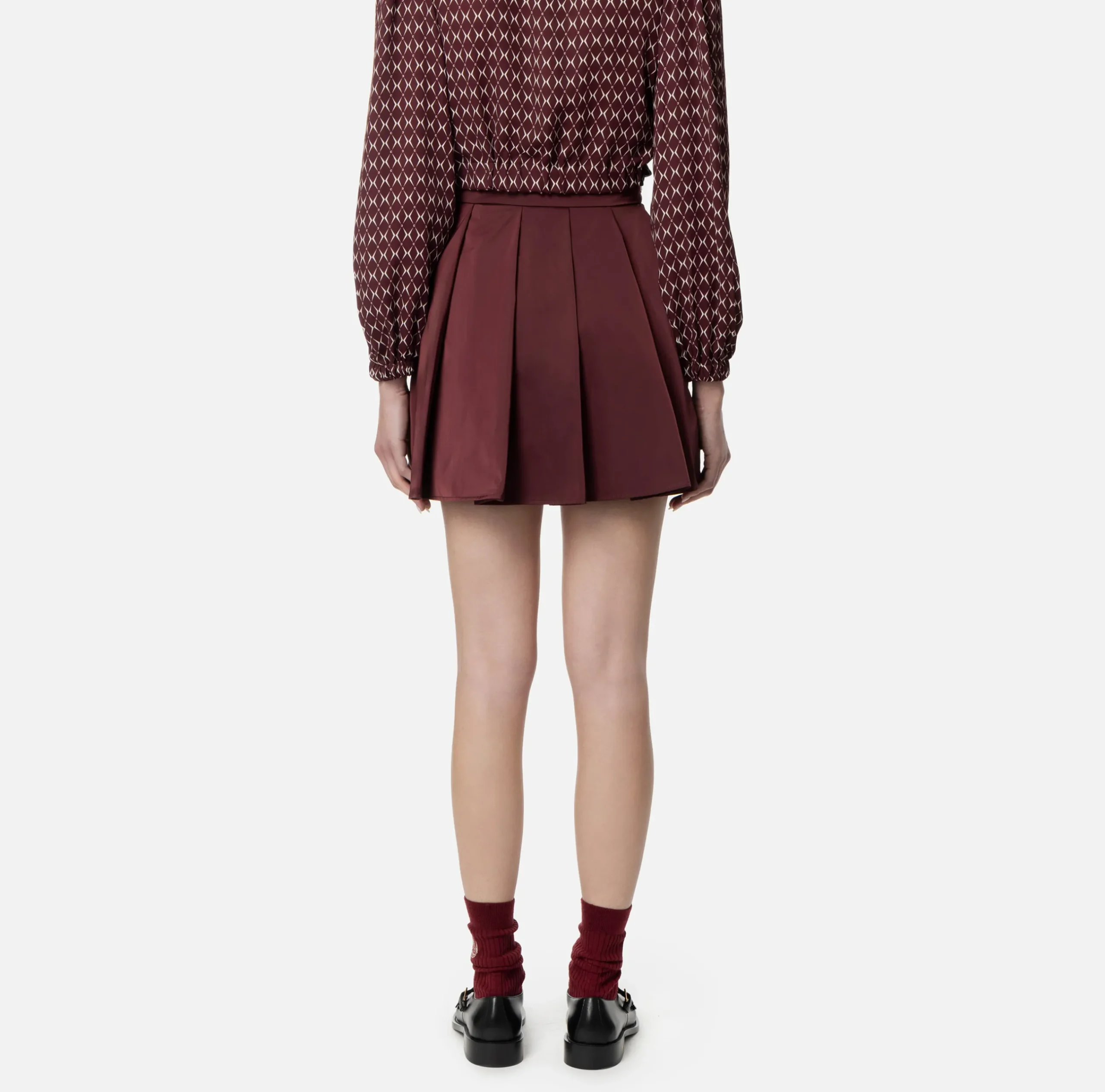 Gonne|Elisabetta Franchi Minigonna a pieghe in nylon tecnico con zip RougeNoir