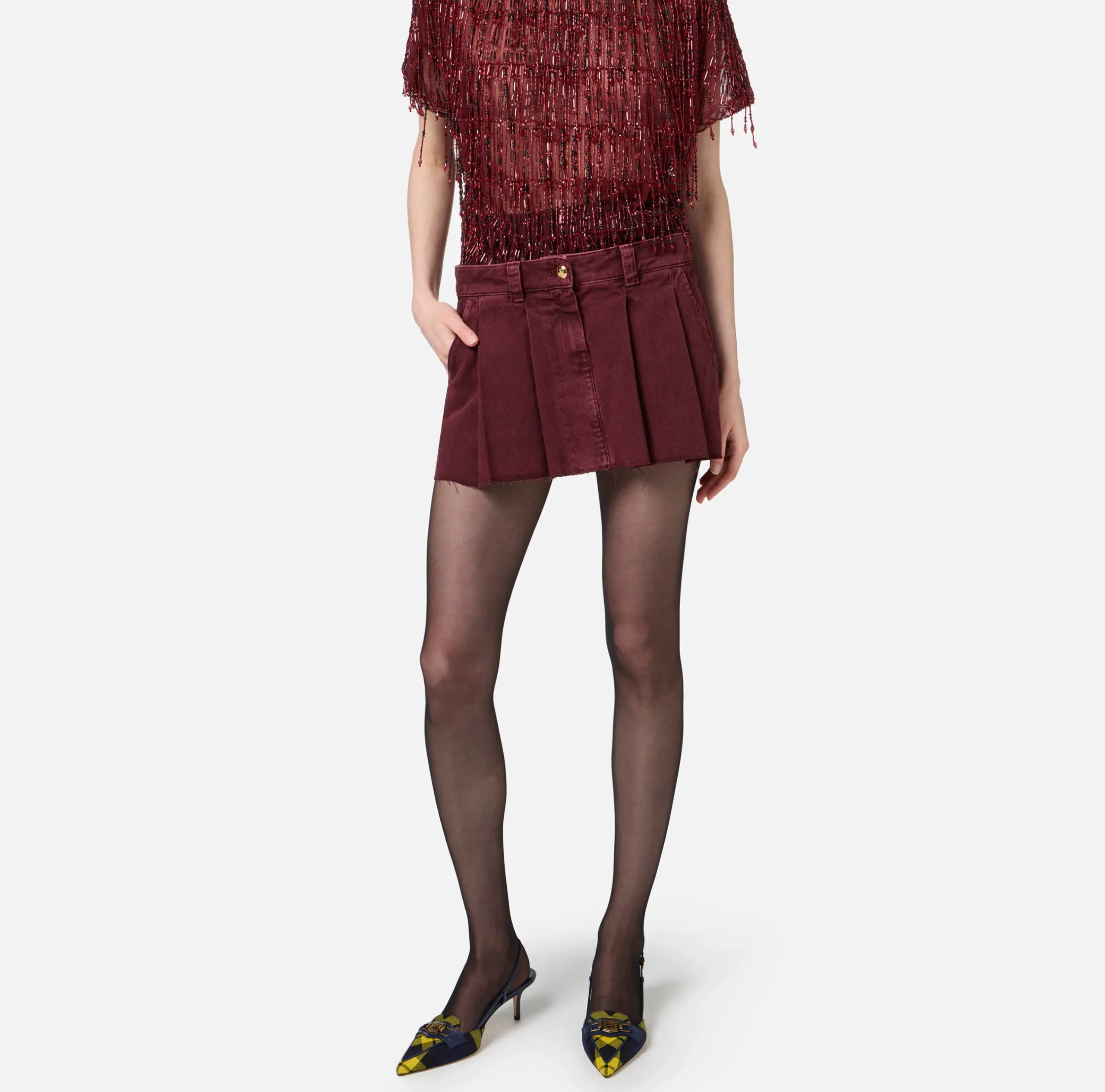 Be the first to review “Gonne|Elisabetta Franchi Minigonna in denim plissé RougeNoir” Annulla risposta