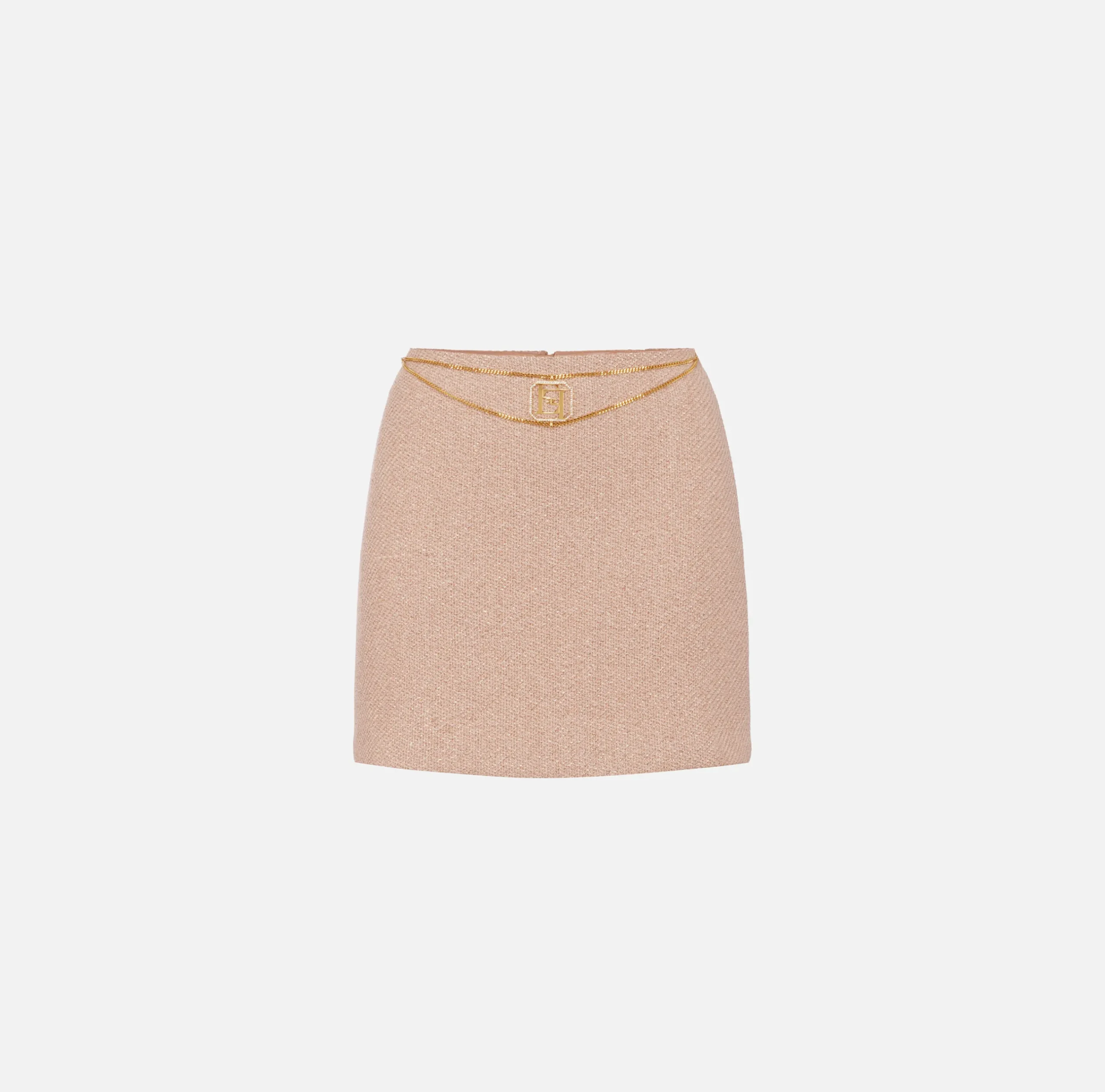 Gonne|Elisabetta Franchi Minigonna in tweed laminato con accessorio logo PeachRose