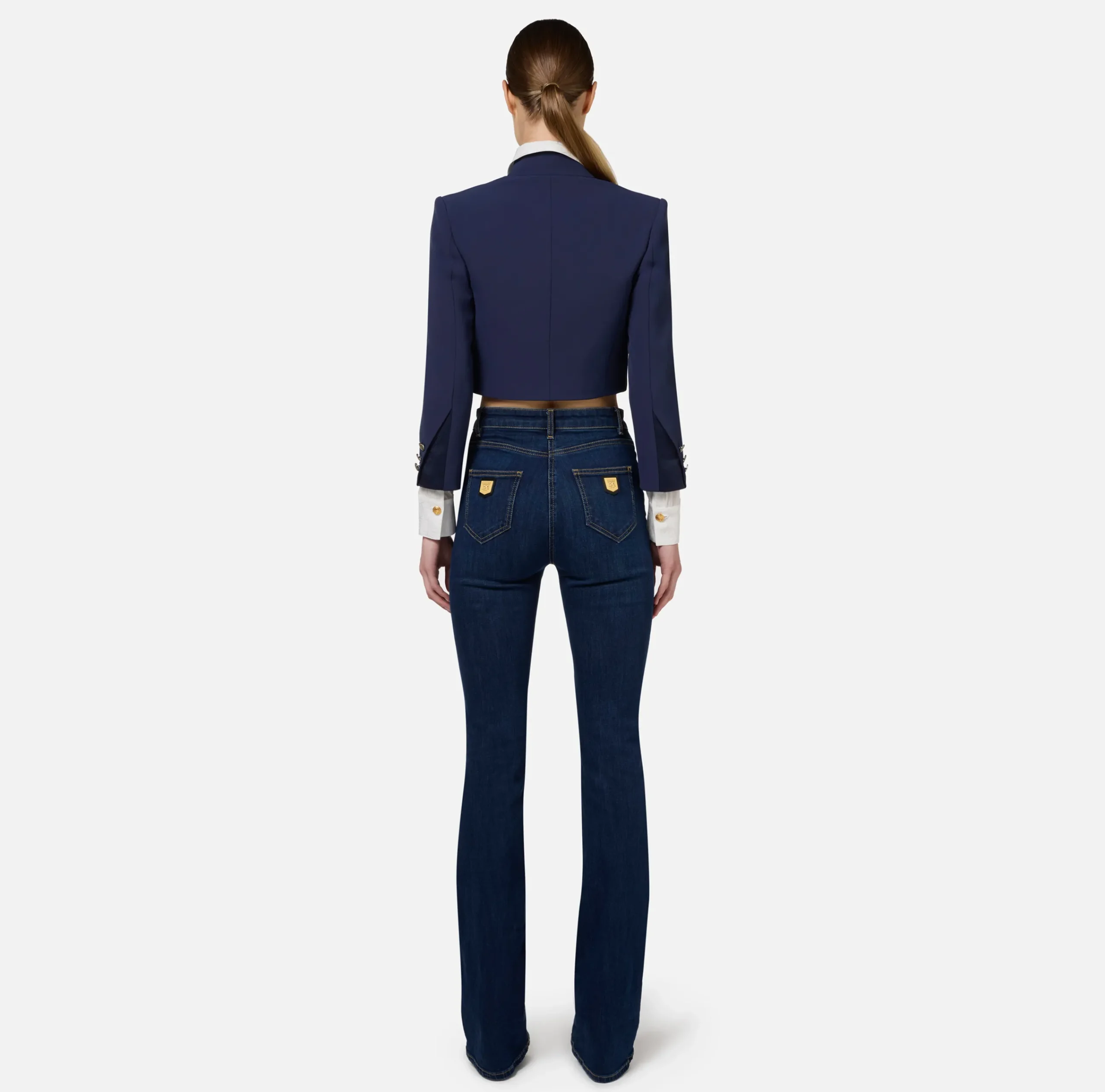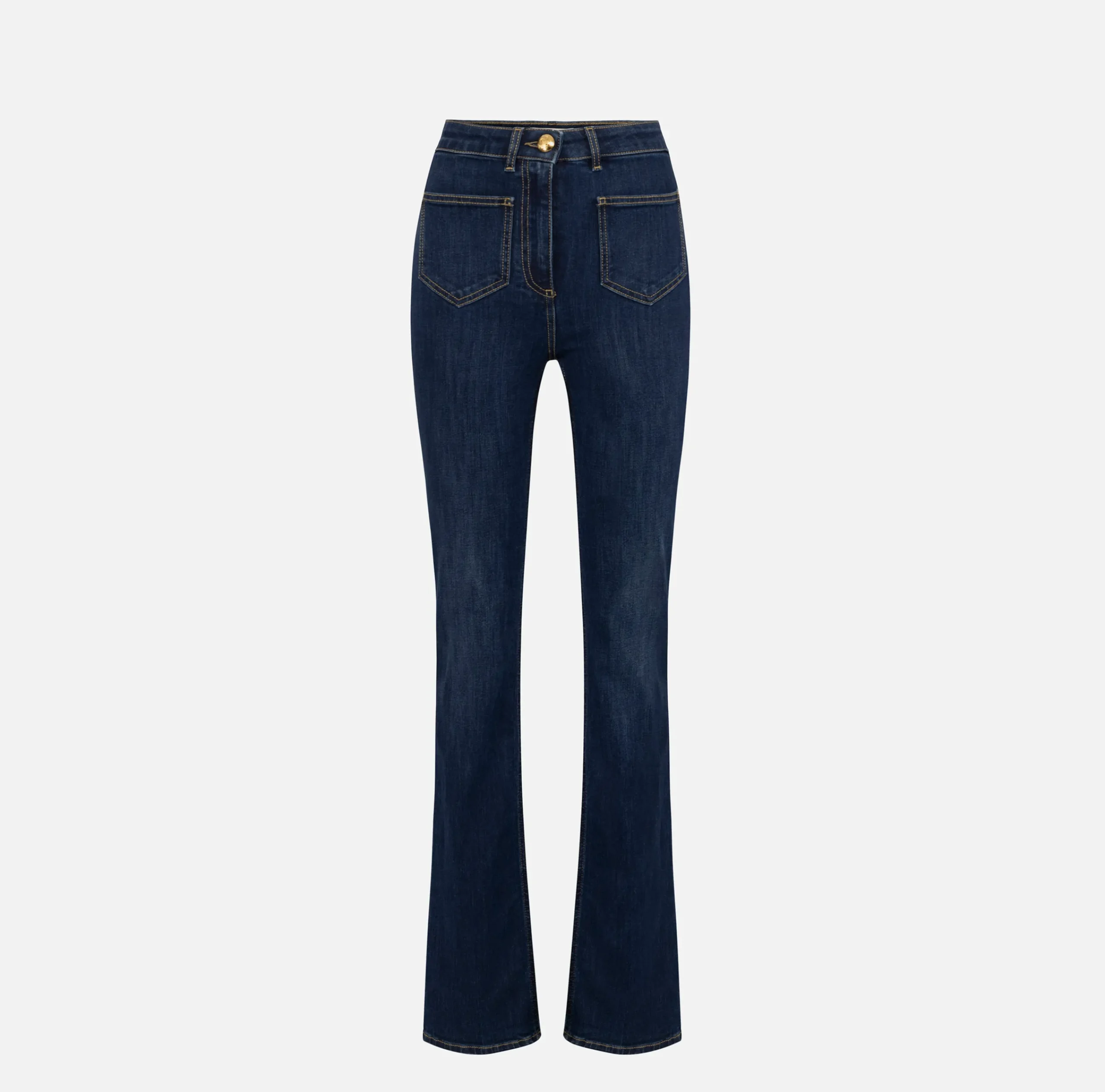 Jeans|Elisabetta Franchi Jeans dritto in cotone stretch con placche logo Bluedenim