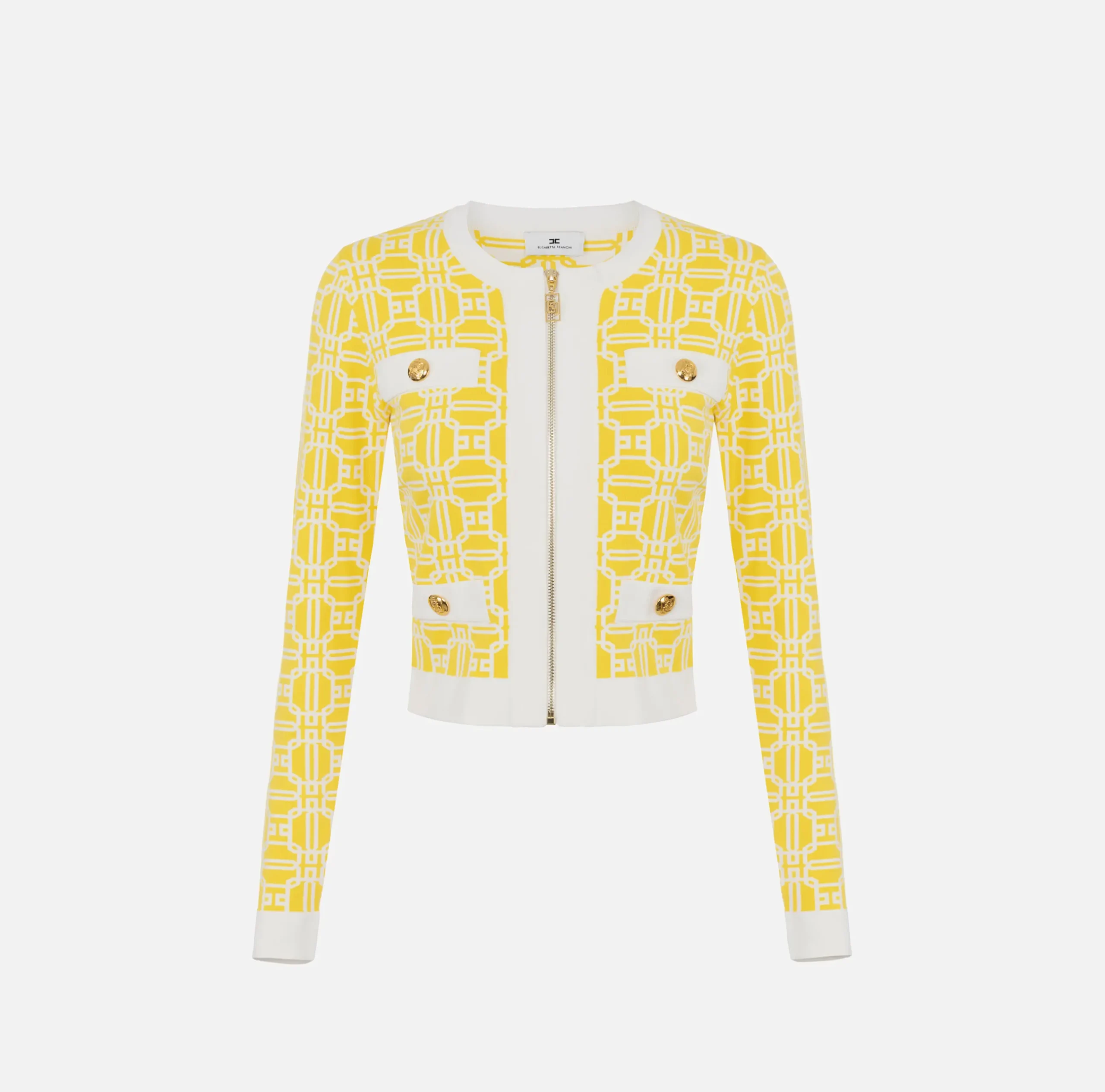 Be the first to review “Maglieria E Felpe|Elisabetta Franchi Cardigan cropped logo jacquard Mimosa/Avorio” Annulla risposta