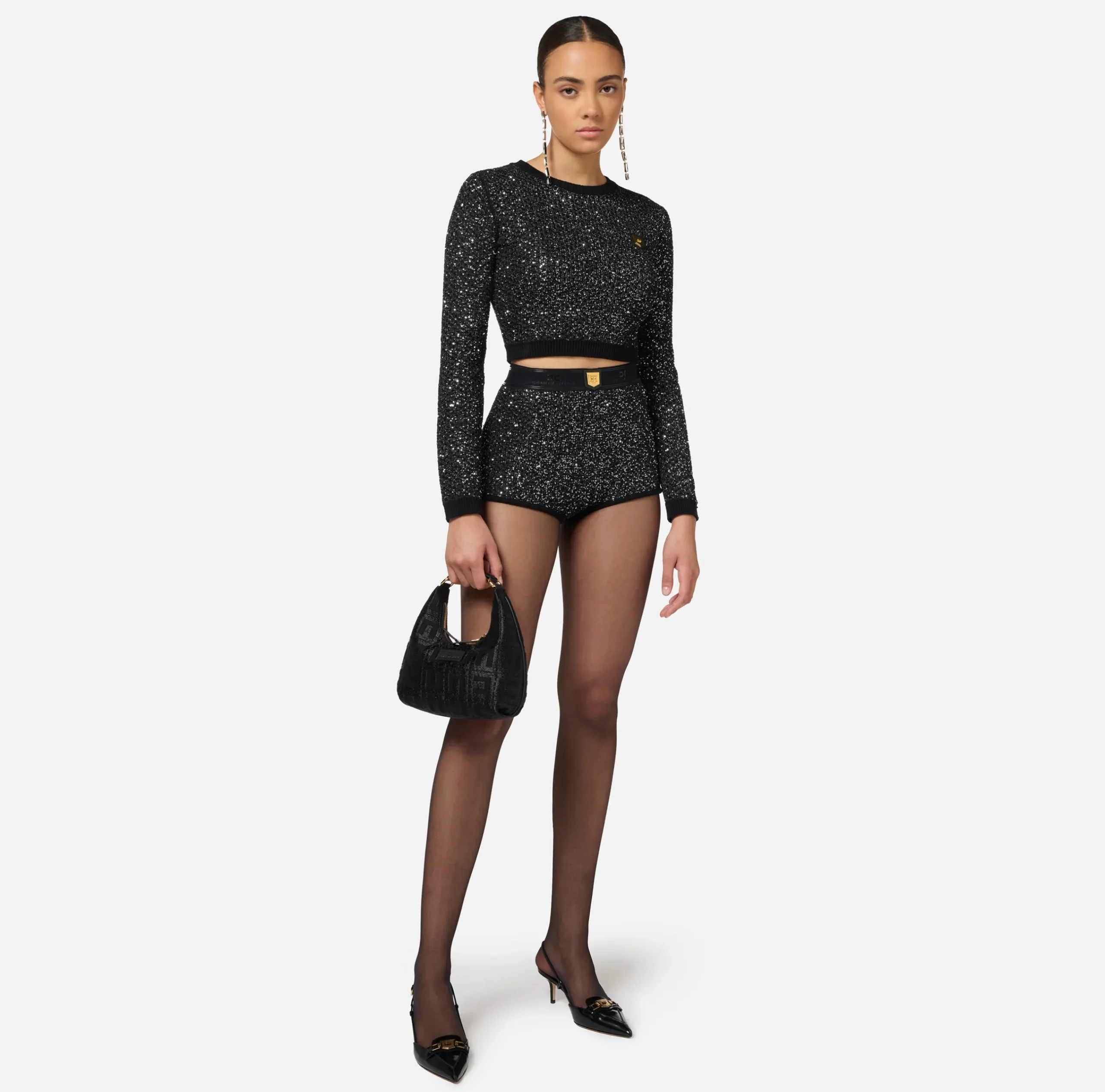 Be the first to review “Maglieria E Felpe|Elisabetta Franchi Crop top in lana con filo paillettes Nero/Silver” Annulla risposta