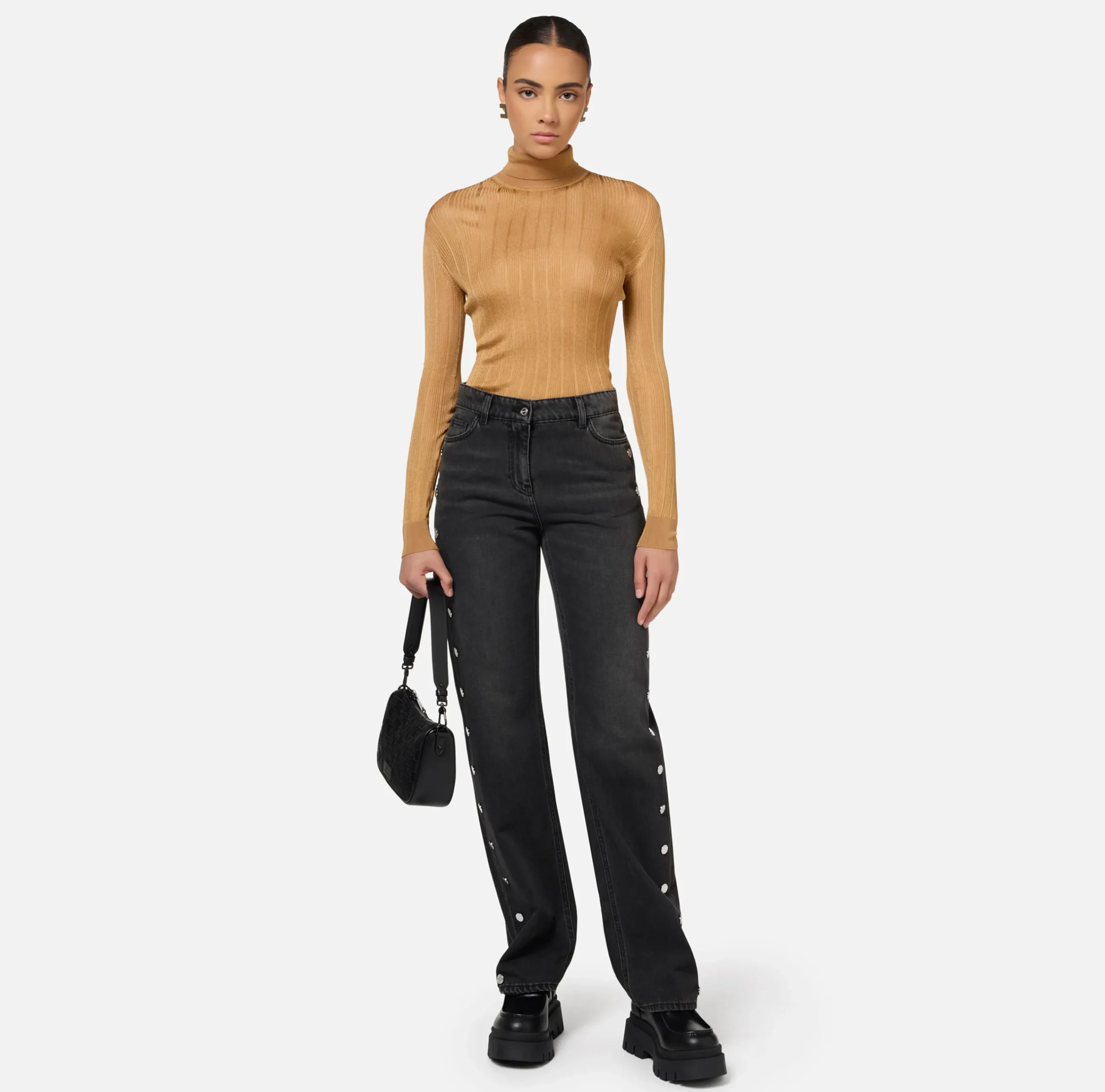 Be the first to review “Maglieria E Felpe|Elisabetta Franchi Dolcevita in viscosa lucida a costine Bronze” Annulla risposta