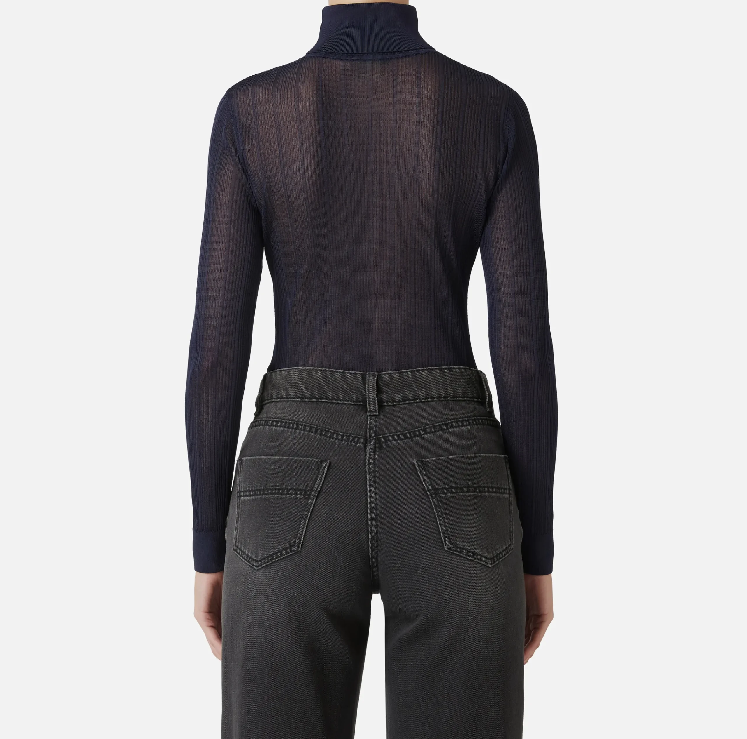 Maglieria E Felpe|Elisabetta Franchi Dolcevita in viscosa lucida a costine Navy