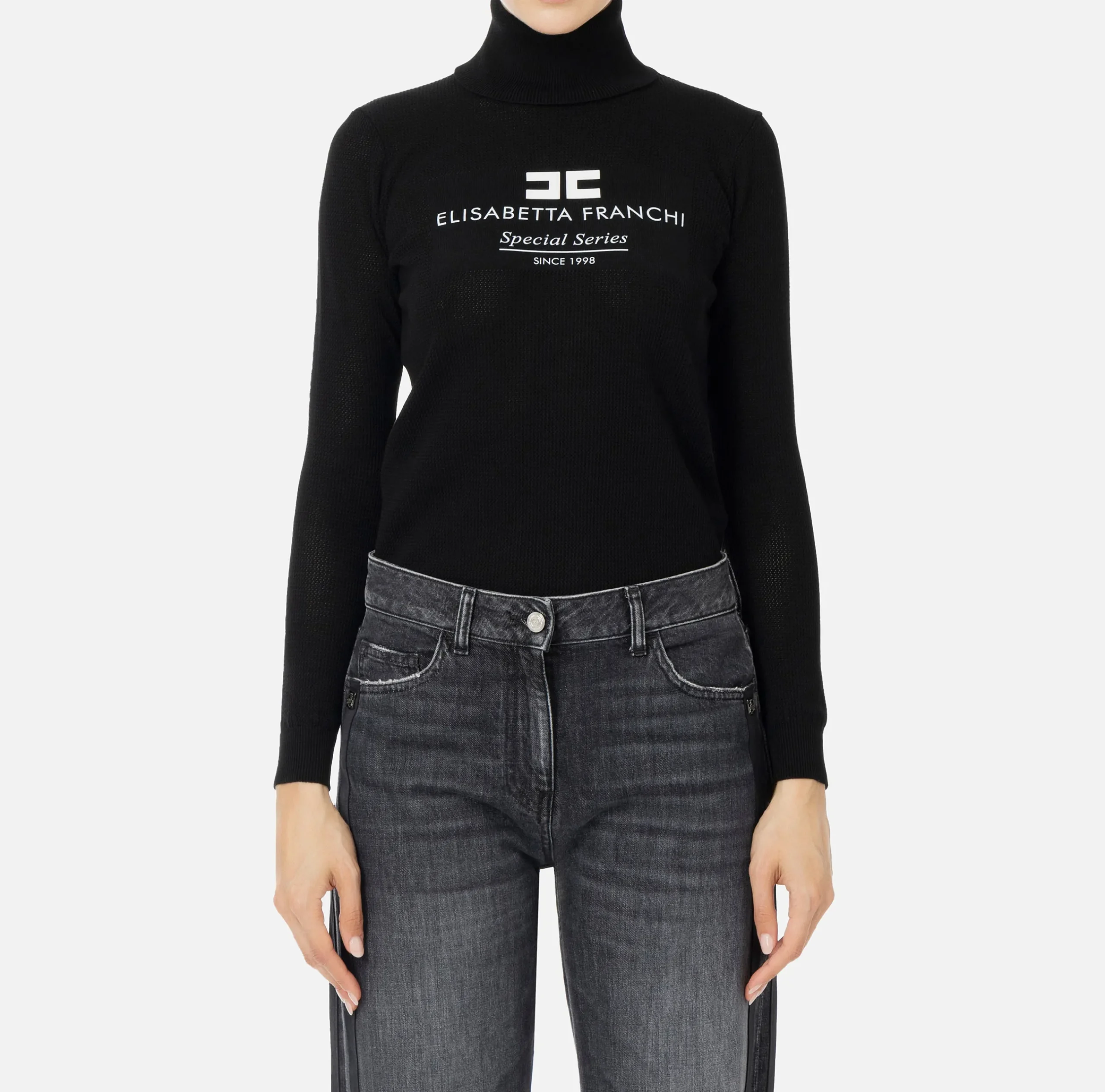 Be the first to review “Maglieria E Felpe|Elisabetta Franchi Dolcevita in viscosa punto rete con intarsio Nero” Annulla risposta