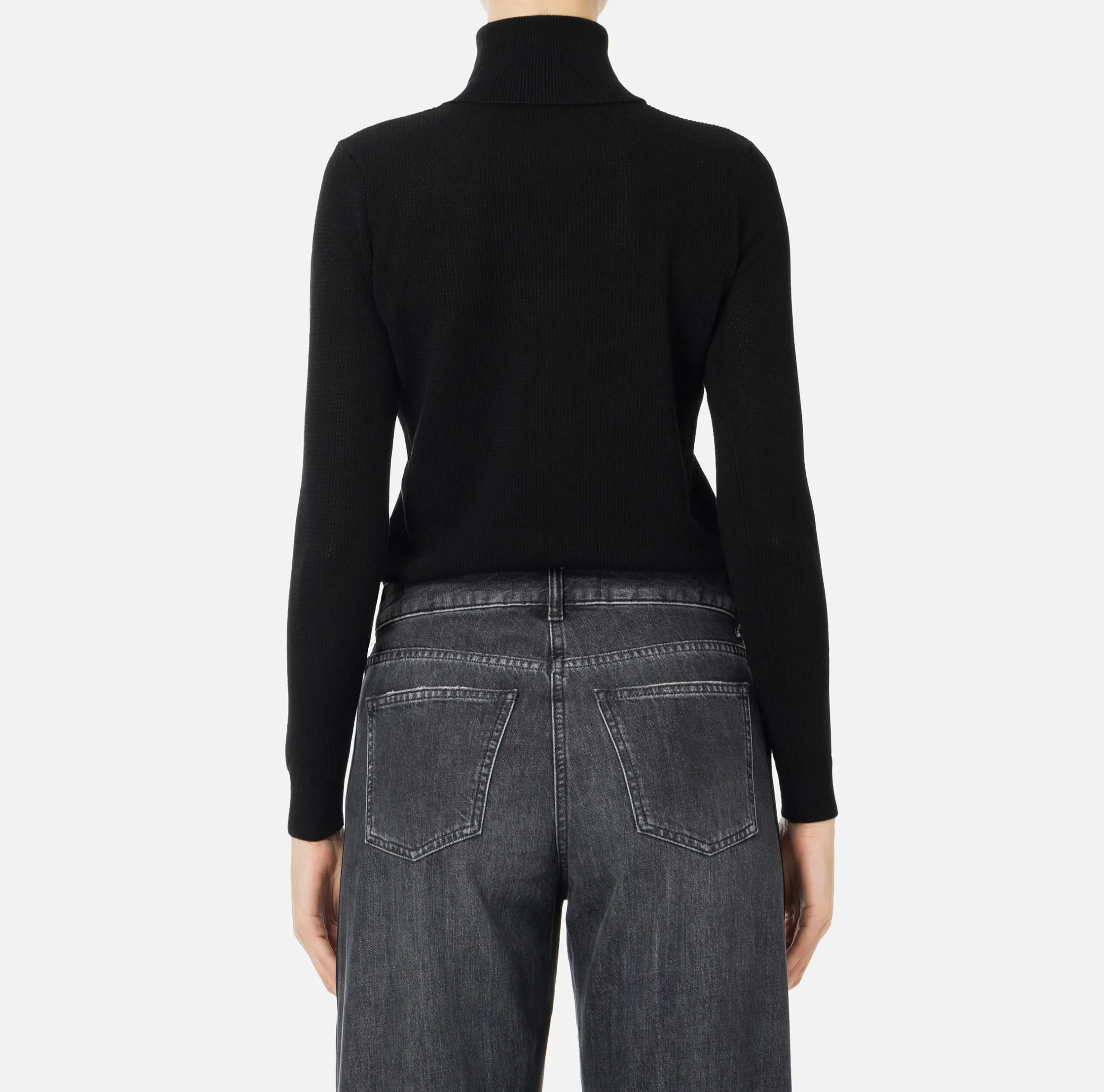 Dolcevita in viscosa punto rete a maniche lunghe. È caratterizzato da un intarsio in rasato con logo in contrasto colore.