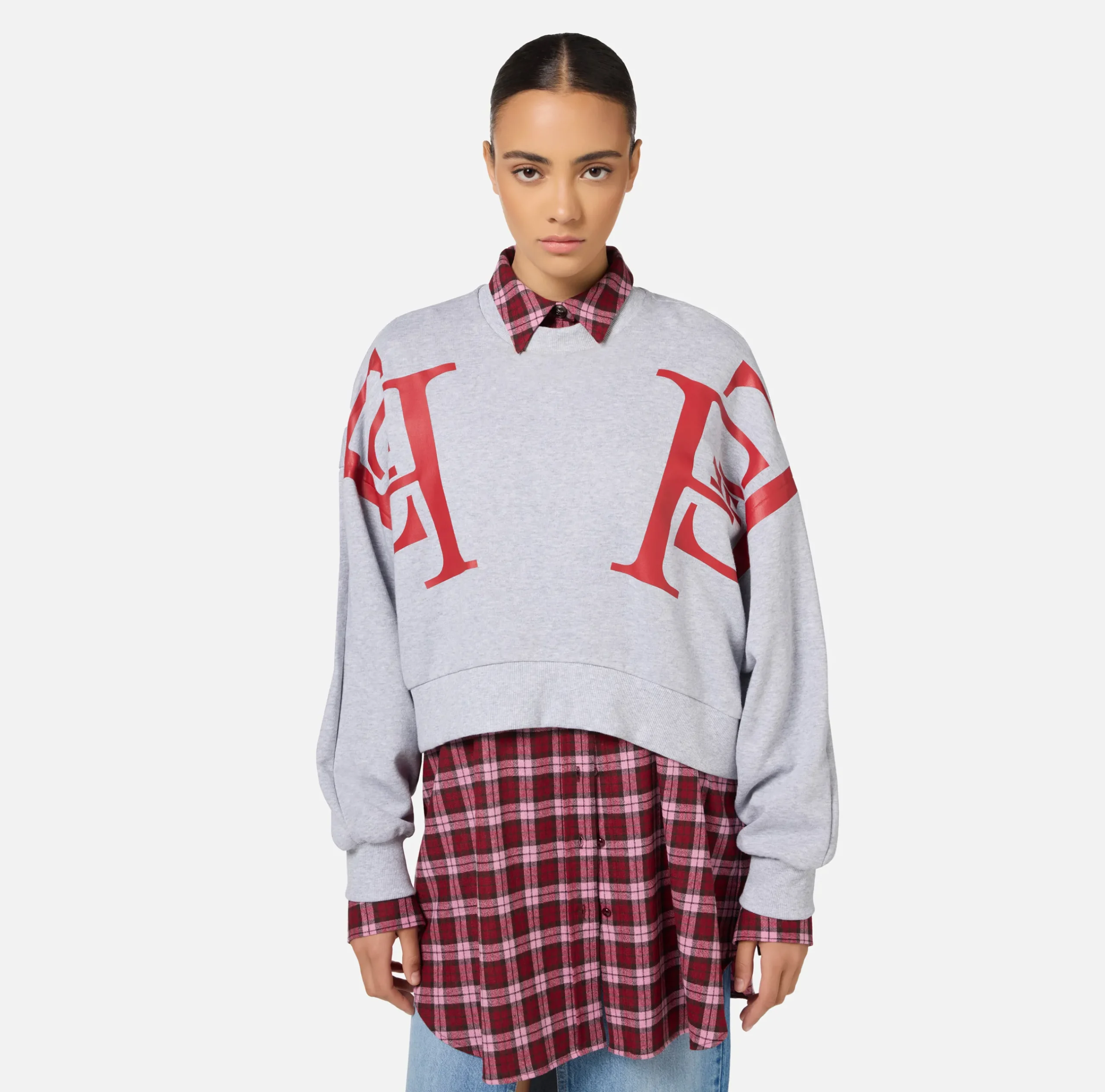 Felpa girocollo cropped in cotone. È caratterizzata da maxi stampa logo posizionata sul davanti e sulle maniche.